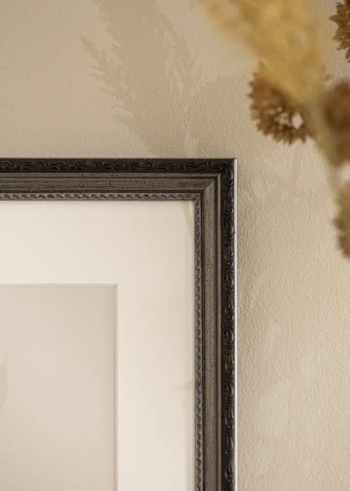 Abisko est un magnifique cadre en argent dans un style rétro avec de superbes ornements. Un excellent choix lorsque vous recherchez un cadre de couleur argent classique.