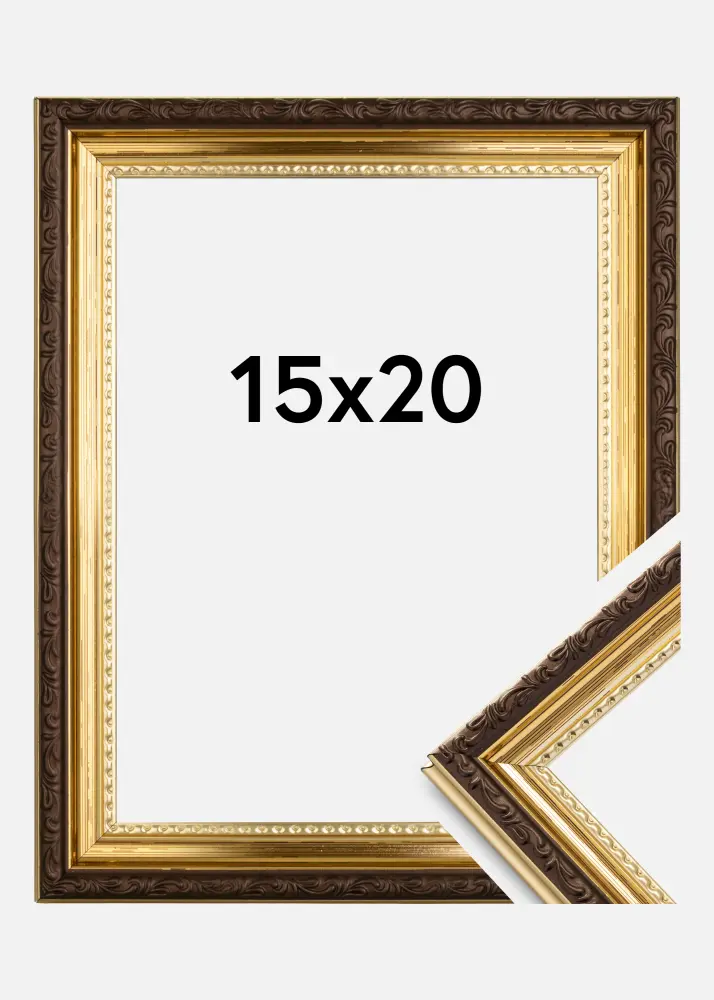 Abisko est un cadre élégant dans une couleur dorée et dans un style rétro avec de jolies décorations. Le cadre est doré brillant avec des éléments de rouge et a une baguette extérieure joliment ornée dans une couleur marron chaude. Il convient très bien lorsque vous recherchez un cadre doré élégant dans un style plus ancien.