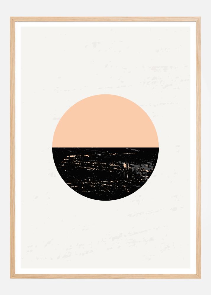 Une affiche abstraite d'un cercle noir avec deux lignes allant du haut à gauche au bas à droite. Le cercle noir a un effet de marbre blanc et gris, les deux lignes noires créant presque les anneaux de Saturne. Apportez-la chez vous et voyez toutes les possibilités qu’elle offre en matière de réflexion.