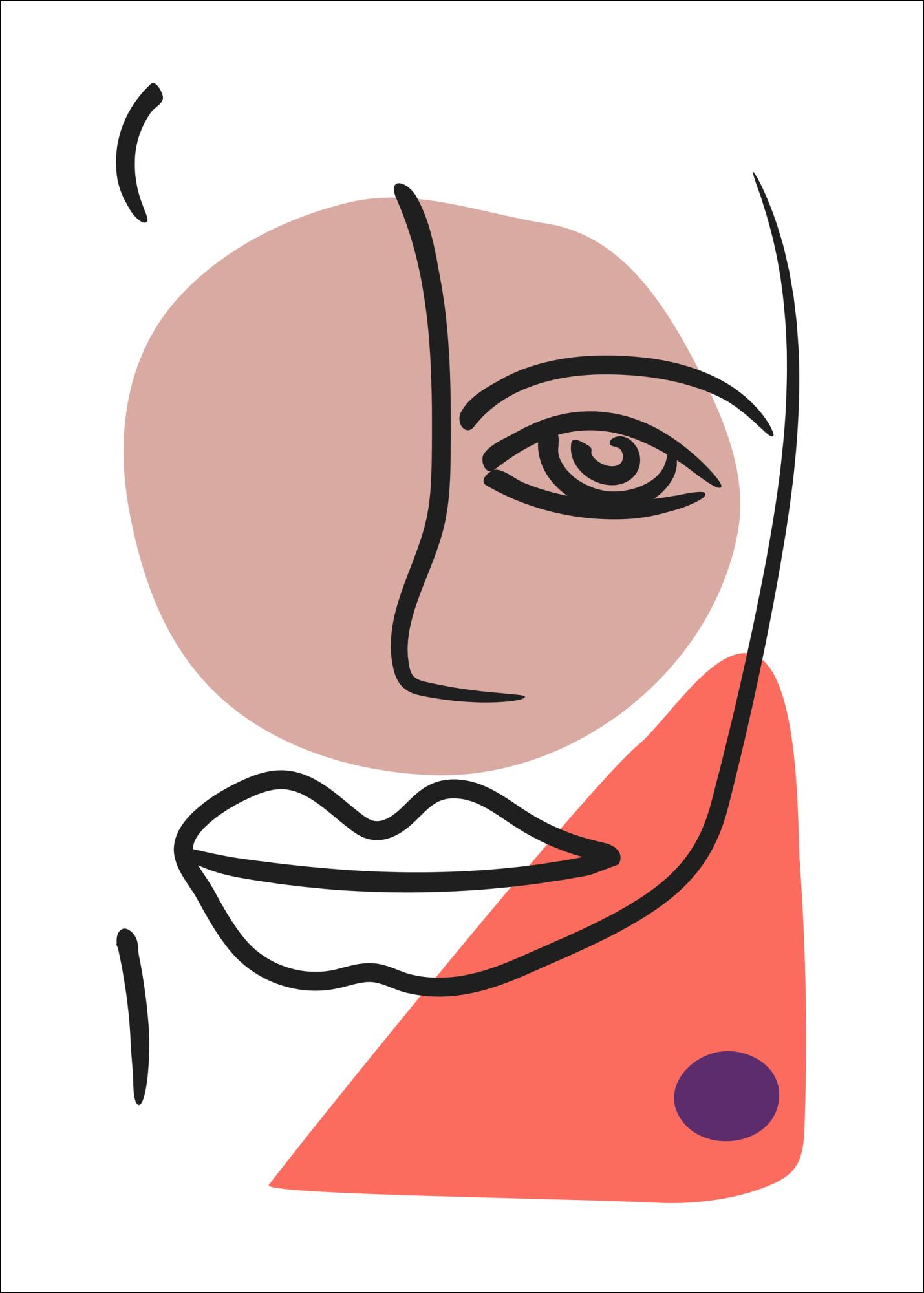 Un curieux poster abstrait d'un visage contemplatif. De fines lignes noires gribouillées créent le nez, les yeux, la bouche et le menton de ce visage attentif. De douces formes bleues, roses et pêche se trouvent en dessous pour donner forme au visage. Associez cette affiche à un mur de caractère pour en faire une véritable pièce d’art et laissez parler votre imagination.