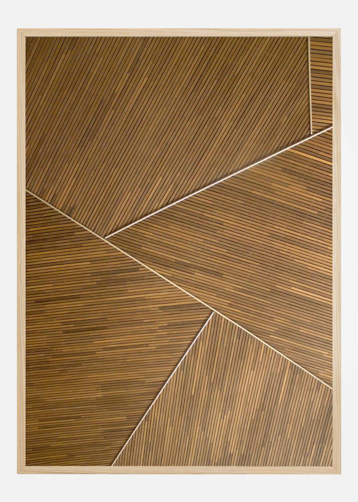 Une affiche aux formes géométriques abstraites. Pensez à des planches de bois qui s'emboîtent dans ce motif simple. Les angles des planches guident le regard autour de la pièce, les lignes blanches constituent des points focaux impeccables. Affirmez-vous en l’accrochant sur un simple mur neutre ou blanc de votre maison.