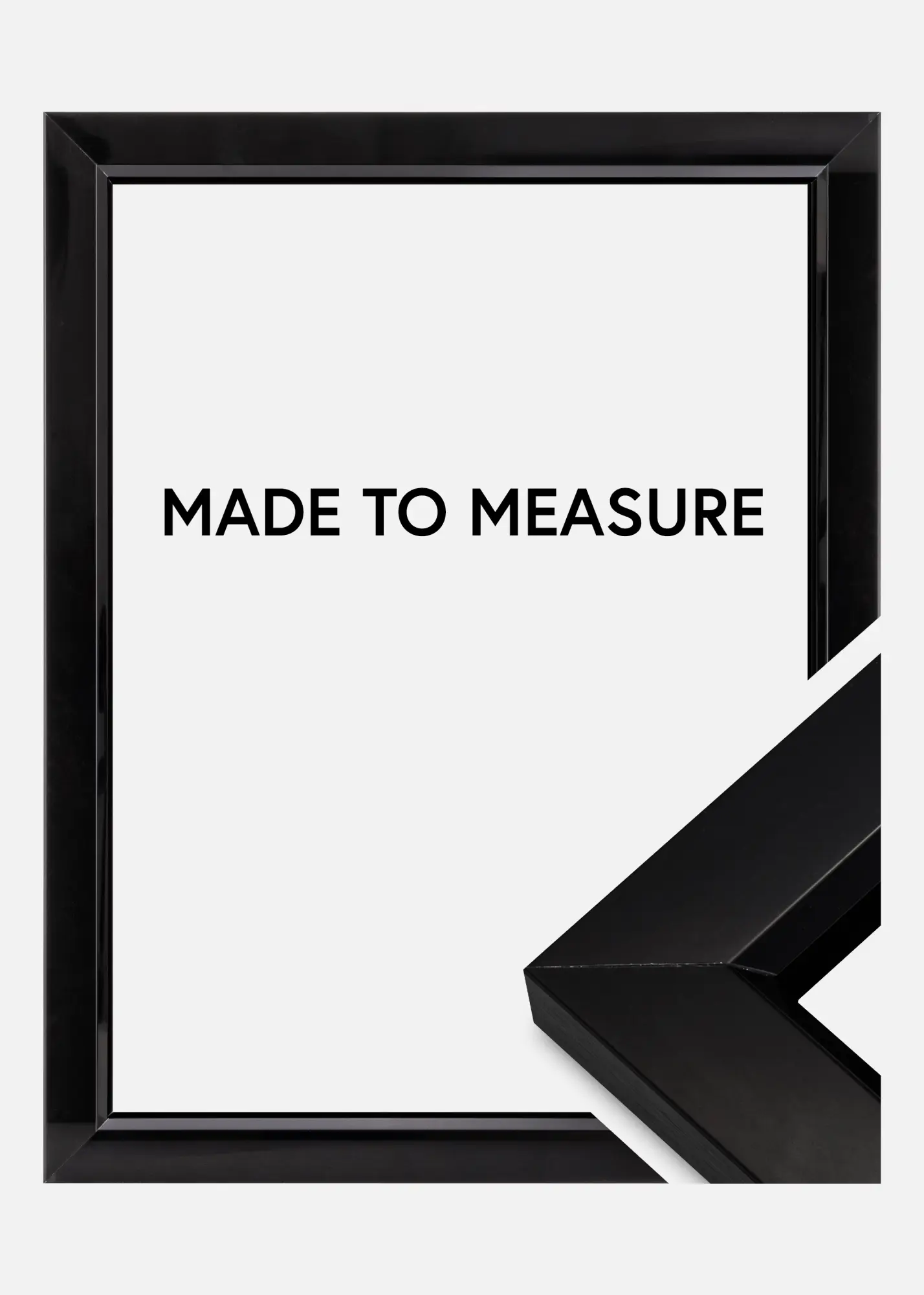 Cadre photo esthétique noir et brillant, fabriqué en aluminium, avec un intérieur biseauté clair. Le cadre s'adapte pour tout, des portraits photographiques aux peintures de paysages à l'aquarelle et un passe-partout blanc améliore d'autant plus le motif. Le laquage brillant fait que le cadre photo s'intègre particulièrement bien dans les intérieurs industriels modernes et autres styles minimalistes. À combiner avec d'autres cadres noirs pour donner à la pièce une homogénéité.