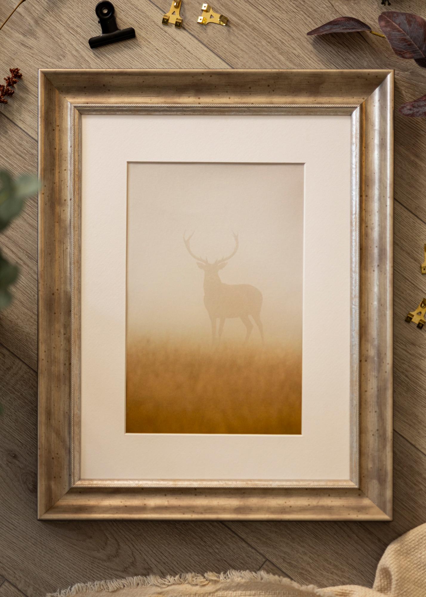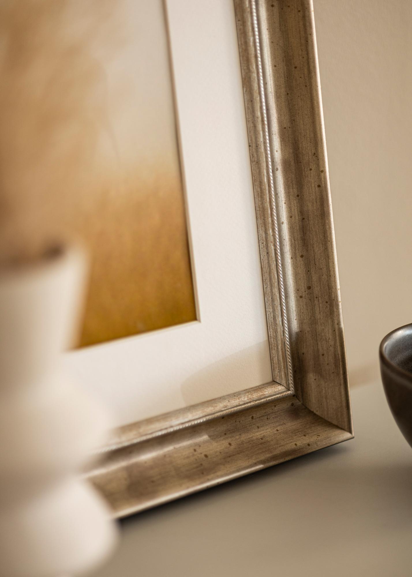 Cadre luxueux dans toutes les tailles avec un profil argenté classique. Un large cadre argenté s'adapte à presque tous les types de motifs et d'environnements.