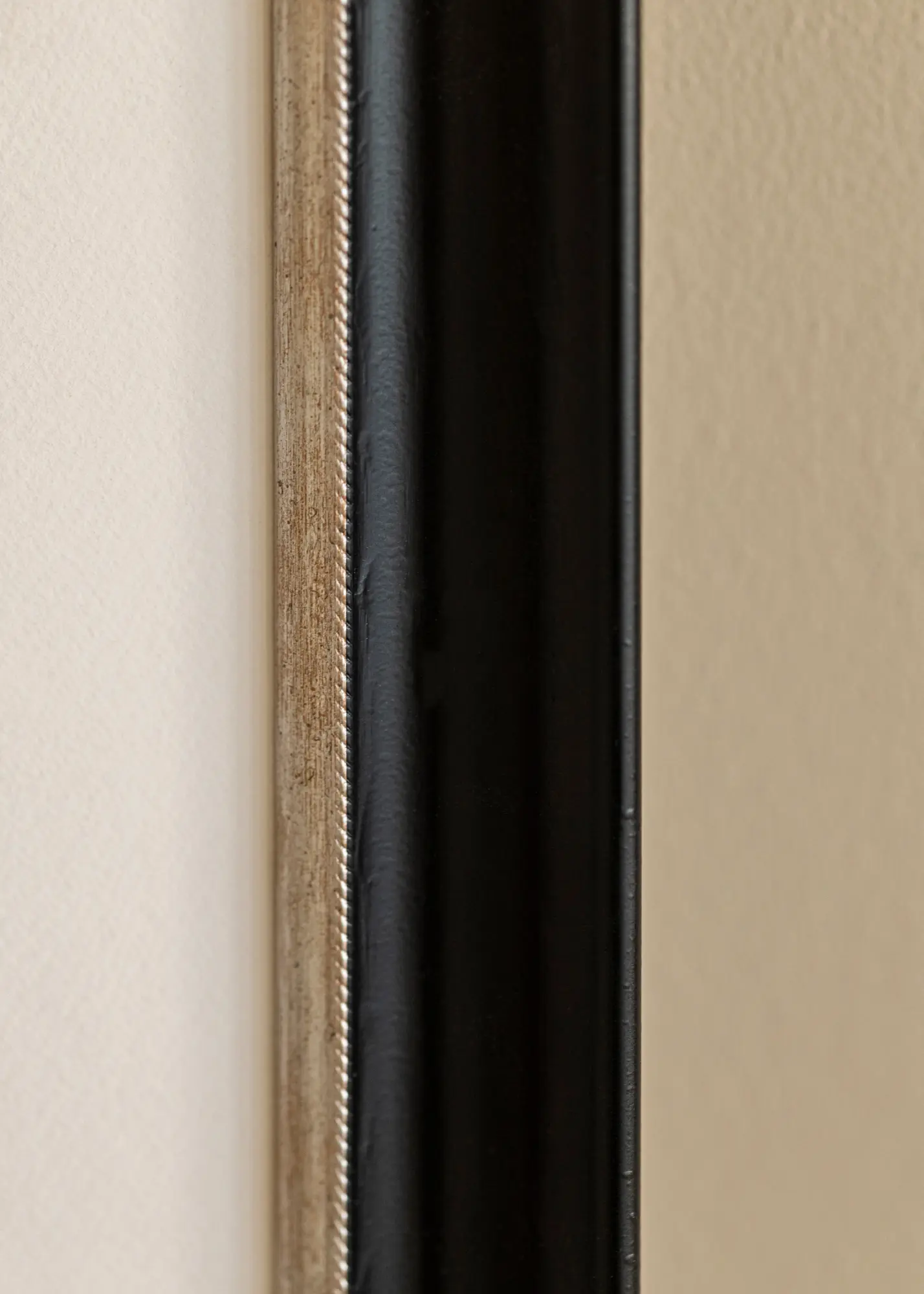 Cadre luxueux dans toutes les tailles avec un profil classique noir. Au plus près du motif se trouve un élégant bord argenté qui donne au cadre un éclat supplémentaire.