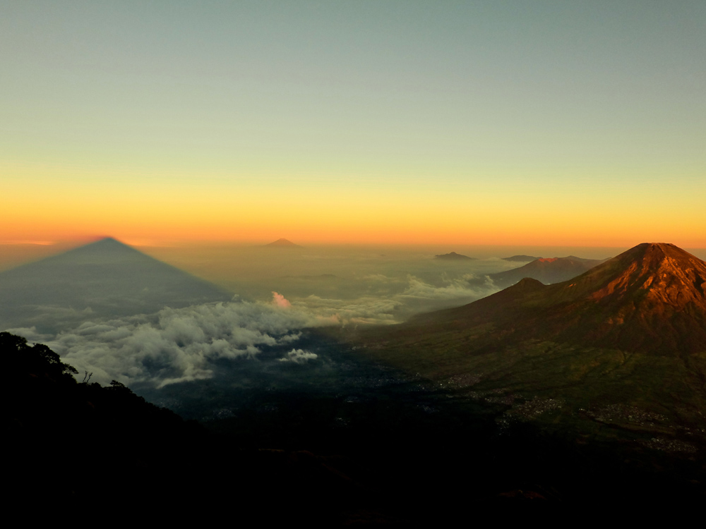 Impression avec une vue magnifique depuis au-dessus des nuages sur des montagnes escarpées au lever du soleil. Les tons jaune-orange du ciel et le premier plan sombre donnent à l'image une veine dramatique qui en fait un point de mire. L'image s'adapte à tous les styles de décoration avec son langage visuel épuré, à associer avec un cadre qui met en valeur les couleurs de la peinture.