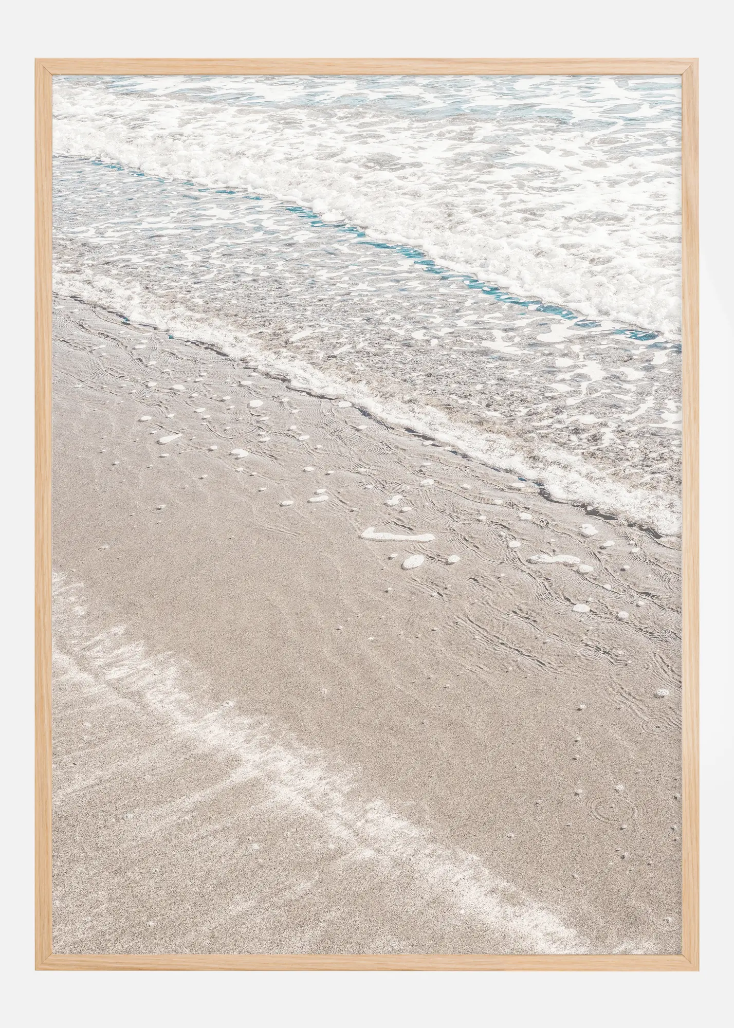 Ce poster apaisant dépeint la beauté naturelle de la frontière de la plage où la mer rencontre la terre. Le sable fin, marqué par les douces vagues de la mer, crée une texture à la fois simple et complexe. Les couleurs tranquilles du sable se mélangent harmonieusement avec l'écume blanche de la mer et la ligne turquoise claire où la vague se brise, offrant un sentiment de paix et de clarté.