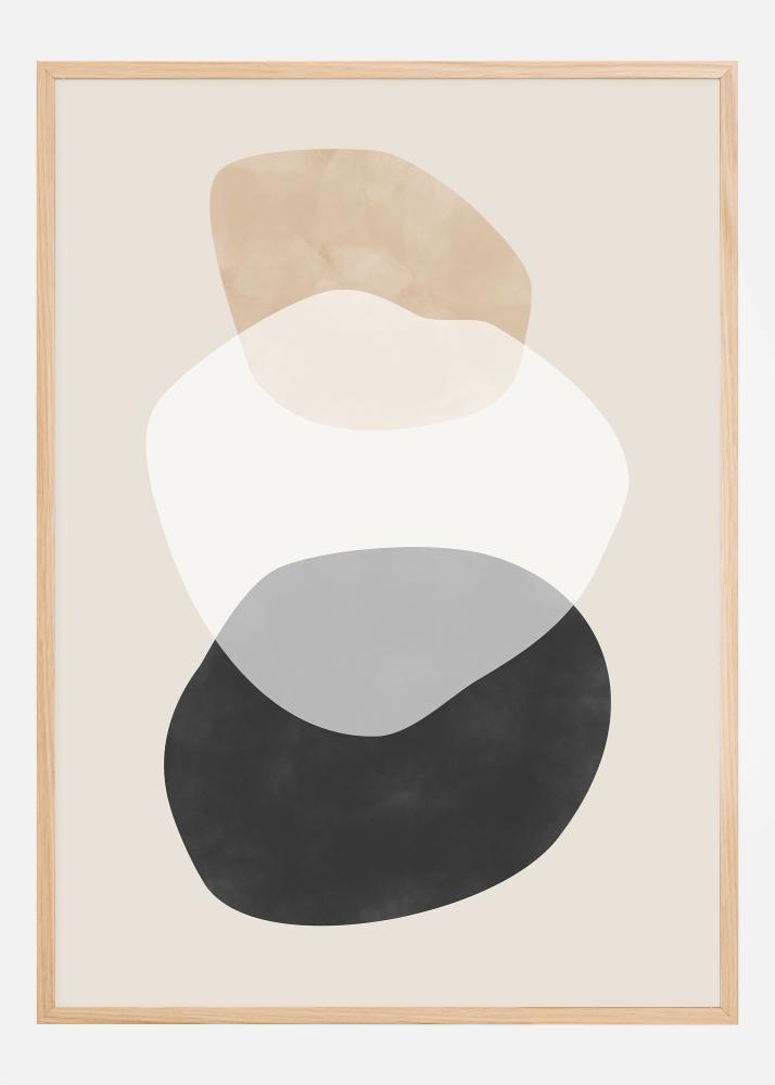 Cette affiche artistique dégage une esthétique calme et moderne qui s'intègre parfaitement dans une maison ou un bureau contemporain. Avec un design minimaliste composé de formes abstraites superposées, ce motif offre un équilibre harmonieux entre des contours doux et des contrastes de couleurs subtils. La palette de couleurs comprend des tons de beige, crème, gris et noir profond, créant une expression discrète mais audacieuse sur le mur. L'œuvre d'art simple mais efficace est une représentation nuancée du design scandinave, idéale pour créer une atmosphère relaxante dans n'importe quelle pièce.
