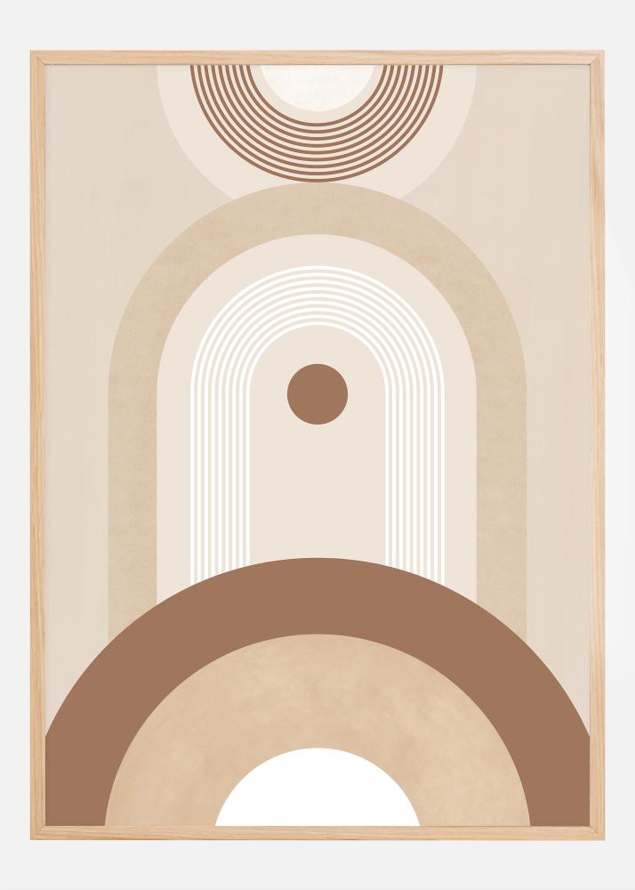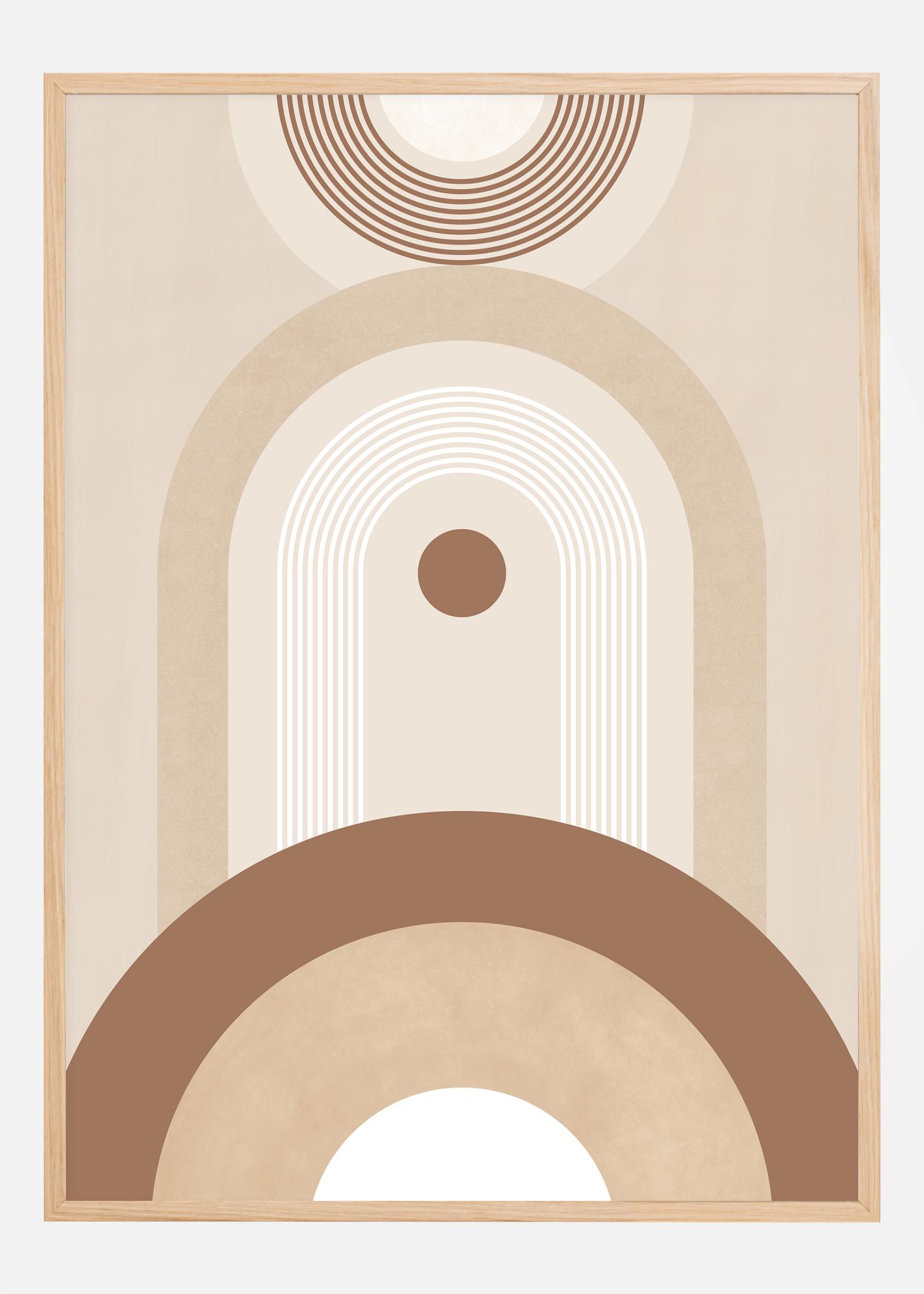 Explorez la beauté de la géométrie et du minimalisme avec cette affiche distinctive, faisant partie de notre collection d'art sélectionnée. Cette impression, inspirée de l'esthétique moderne du milieu du siècle, combine des formes circulaires et des lignes pour créer une sensation d'équilibre et d'harmonie. Les tons doux beige et brun de cette affiche transmettent une sensation de calme et sont parfaits pour créer une atmosphère détendue et élégante dans n'importe quelle pièce.