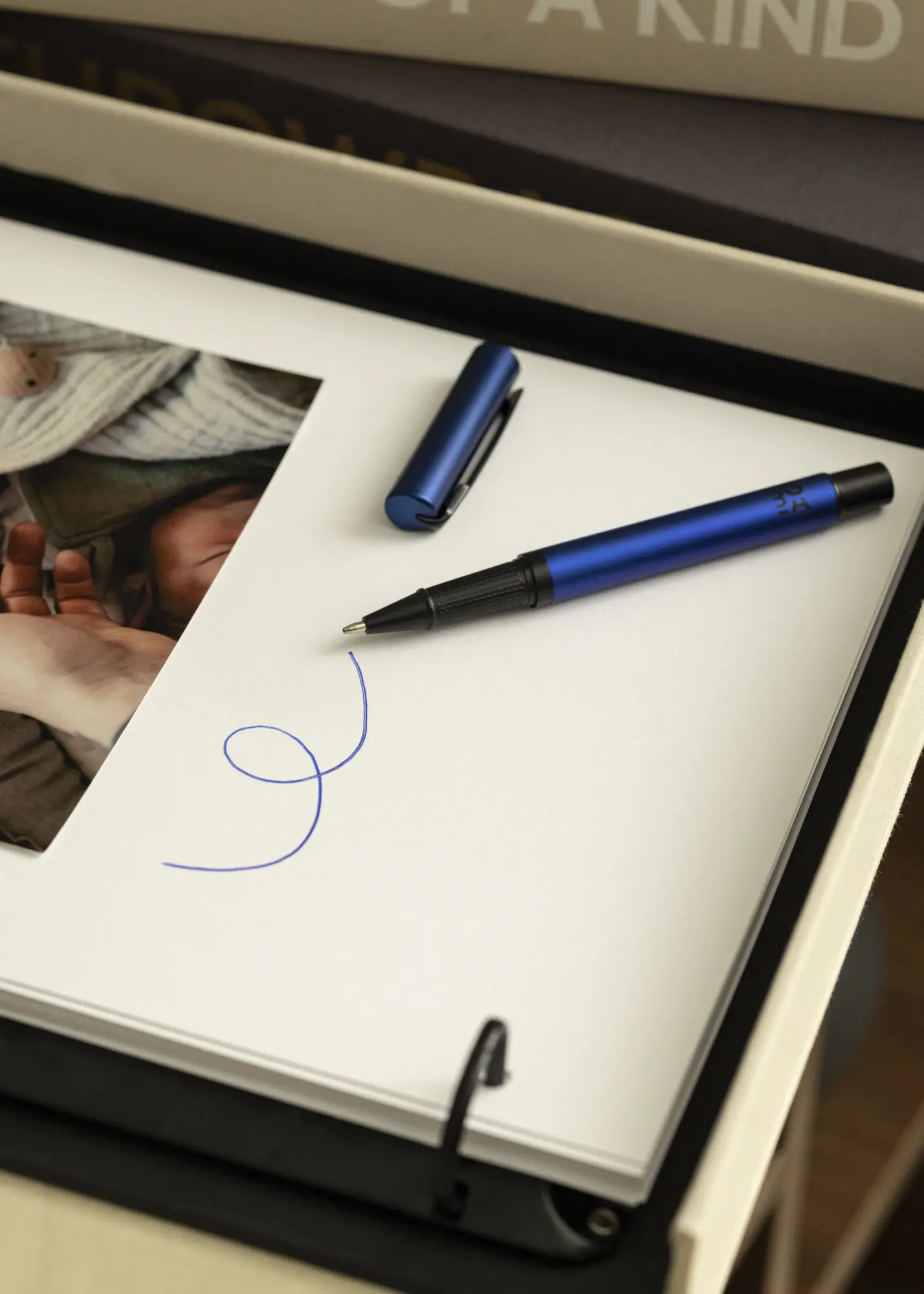 Stylo pour album de couleur bleue avec effet métallique - idéal à utiliser sur des feuilles d'album et des photographies. L'épaisseur de la mine du stylo est de 1 mm.