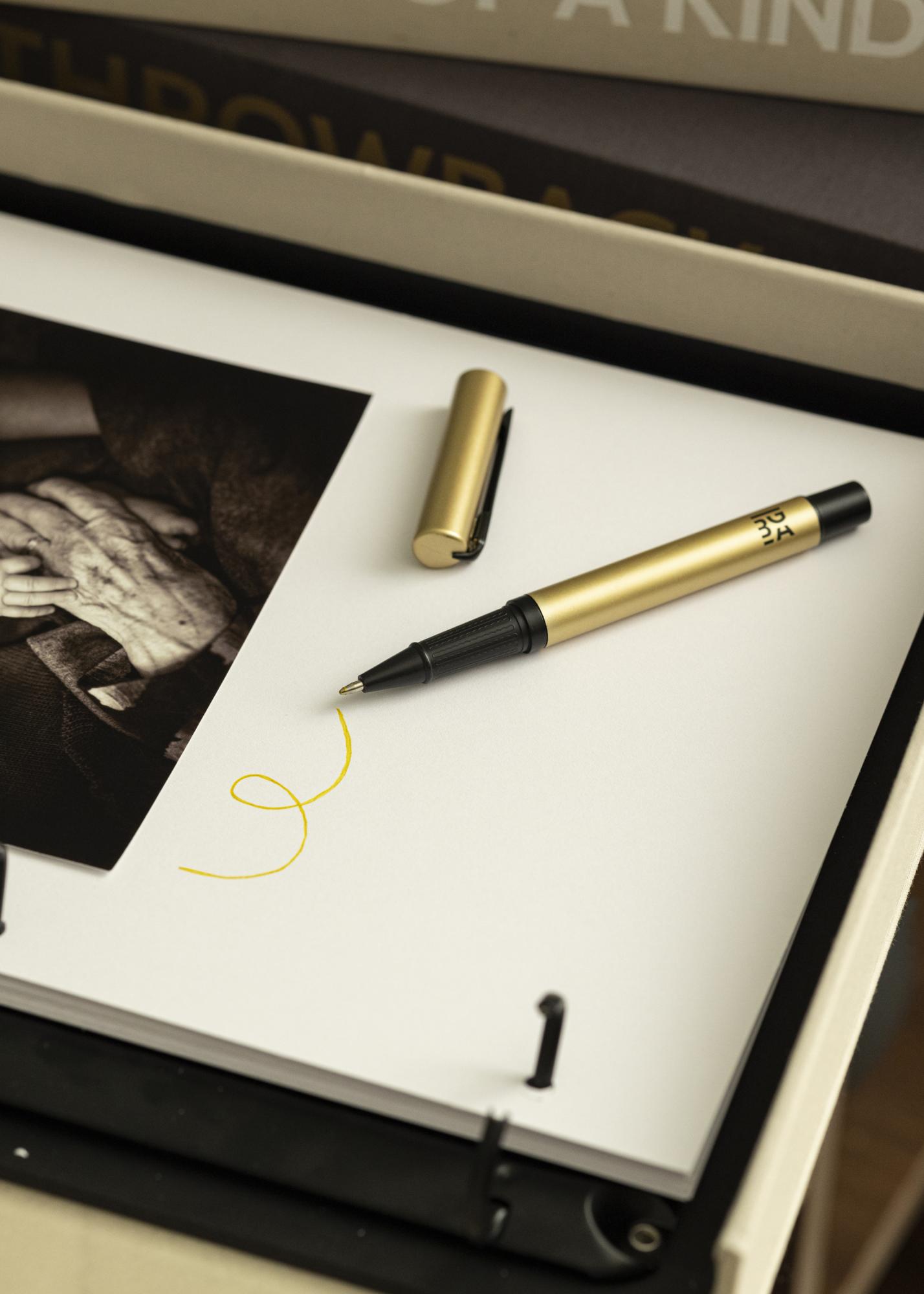 Stylo pour album de couleur or métallique qui fonctionne remarquablement bien sur, par exemple, des surfaces glacées comme des photographies. L'épaisseur de la mine du stylo est de 1 mm.