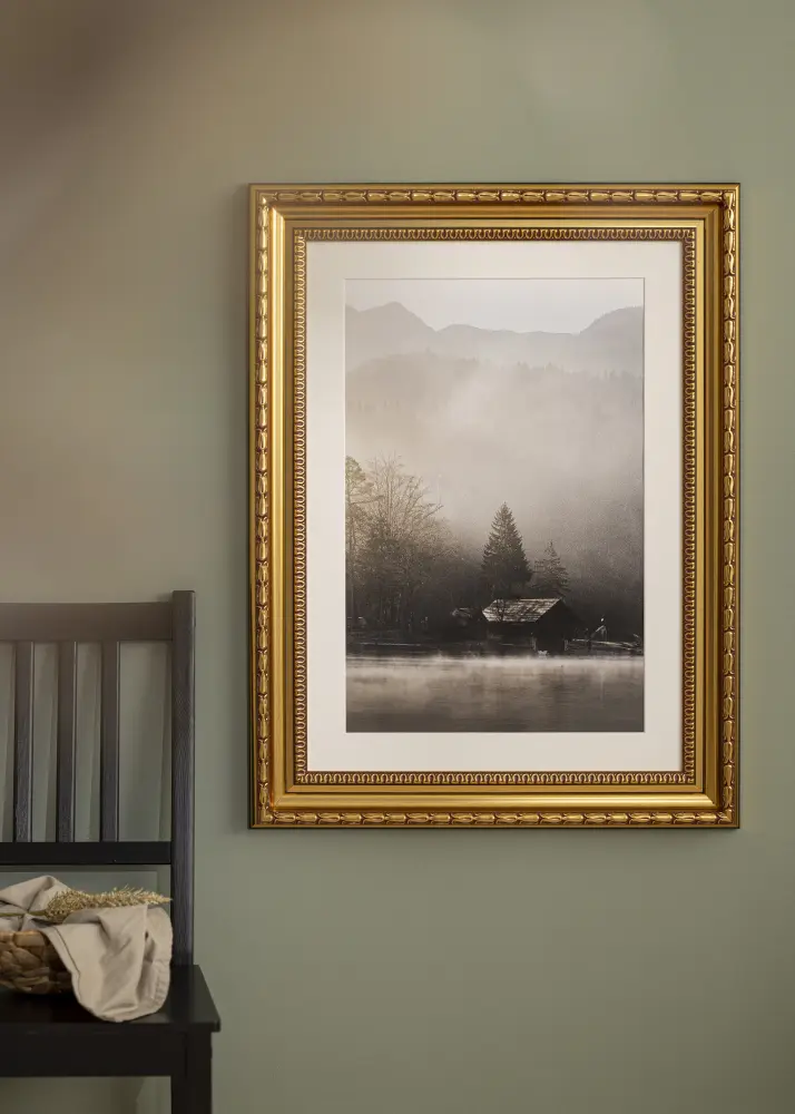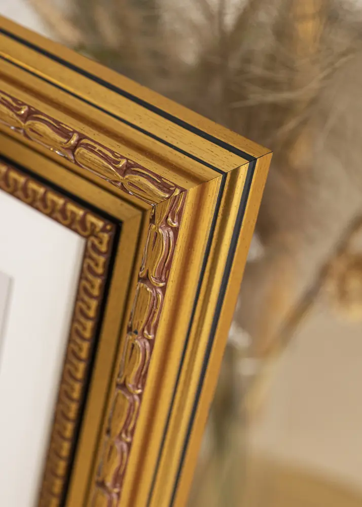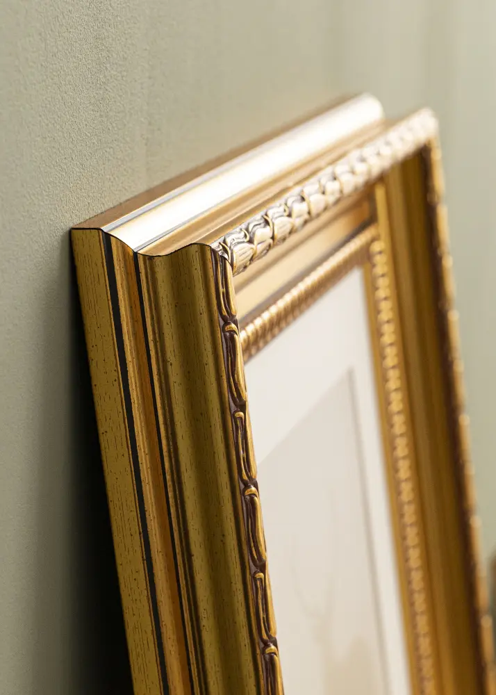 Birka est un cadre doré que vous aimerez regarder très longtemps. Avec son profil large et ses sublimes ornements, c'est un cadre qui convient lorsque vous recherchez quelque chose de vraiment spectaculaire. Le cadre est fabriqué dans notre propre atelier de cadre, ce qui fait que nous osons promettre une qualité extraordinaire !