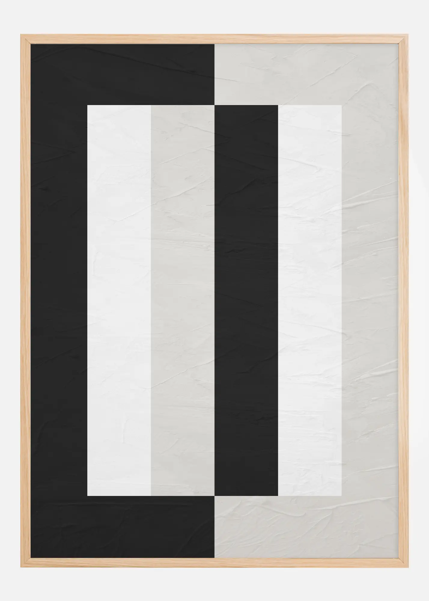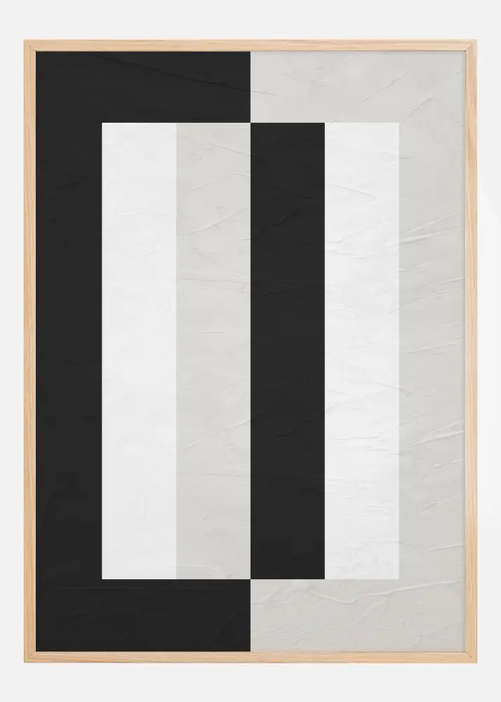 Cette affiche sophistiquée présente une composition audacieuse et graphique qui capte immédiatement l'attention du spectateur. La combinaison contrastante de noir et blanc forme une série de lignes et de blocs verticaux, créant une illusion d'optique de profondeur et de mouvement. Cette affiche est idéale pour le décorateur moderne à la recherche d'une œuvre d'art qui transmet un sentiment d'élégance et de design contemporain. La palette de couleurs sobre permet d'intégrer facilement cette image dans diverses pièces et environnements.