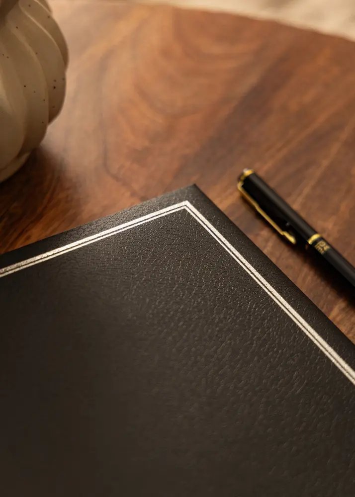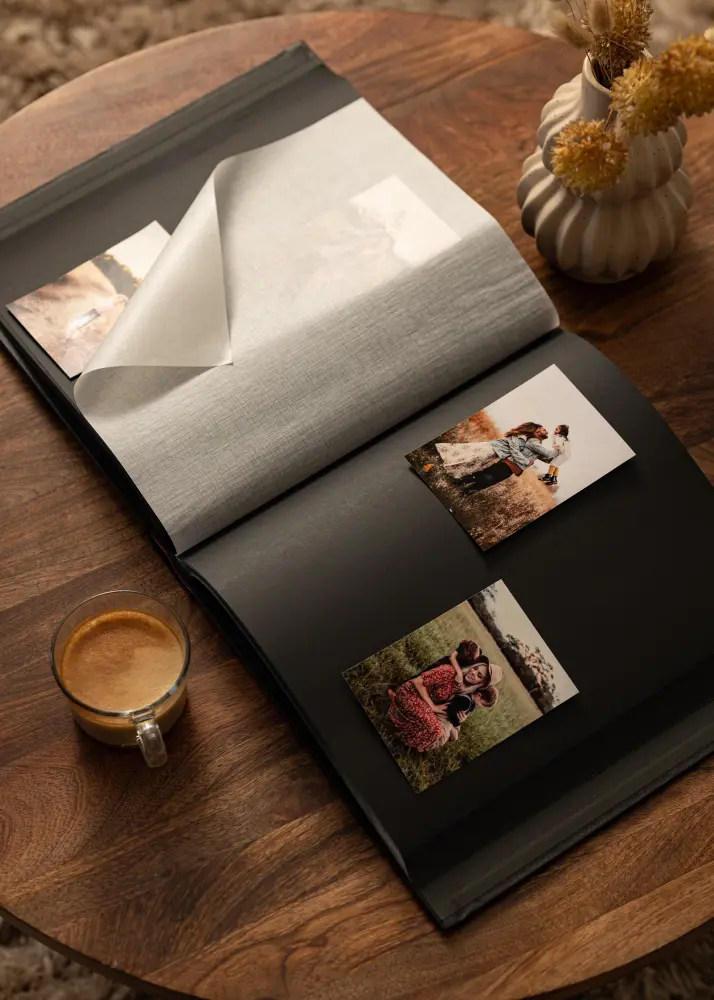 Black Line Maxi est un album photo relié avec des reliures extra solides qui donnent une sensation de haute qualité. L'album a des feuilles de carton noires avec des feuilles de papier cristal entre chaque feuille. L'album convient à toutes les tailles d'image et peut contenir jusqu'à 500 images au format 10x15 cm ou 11x15 cm.