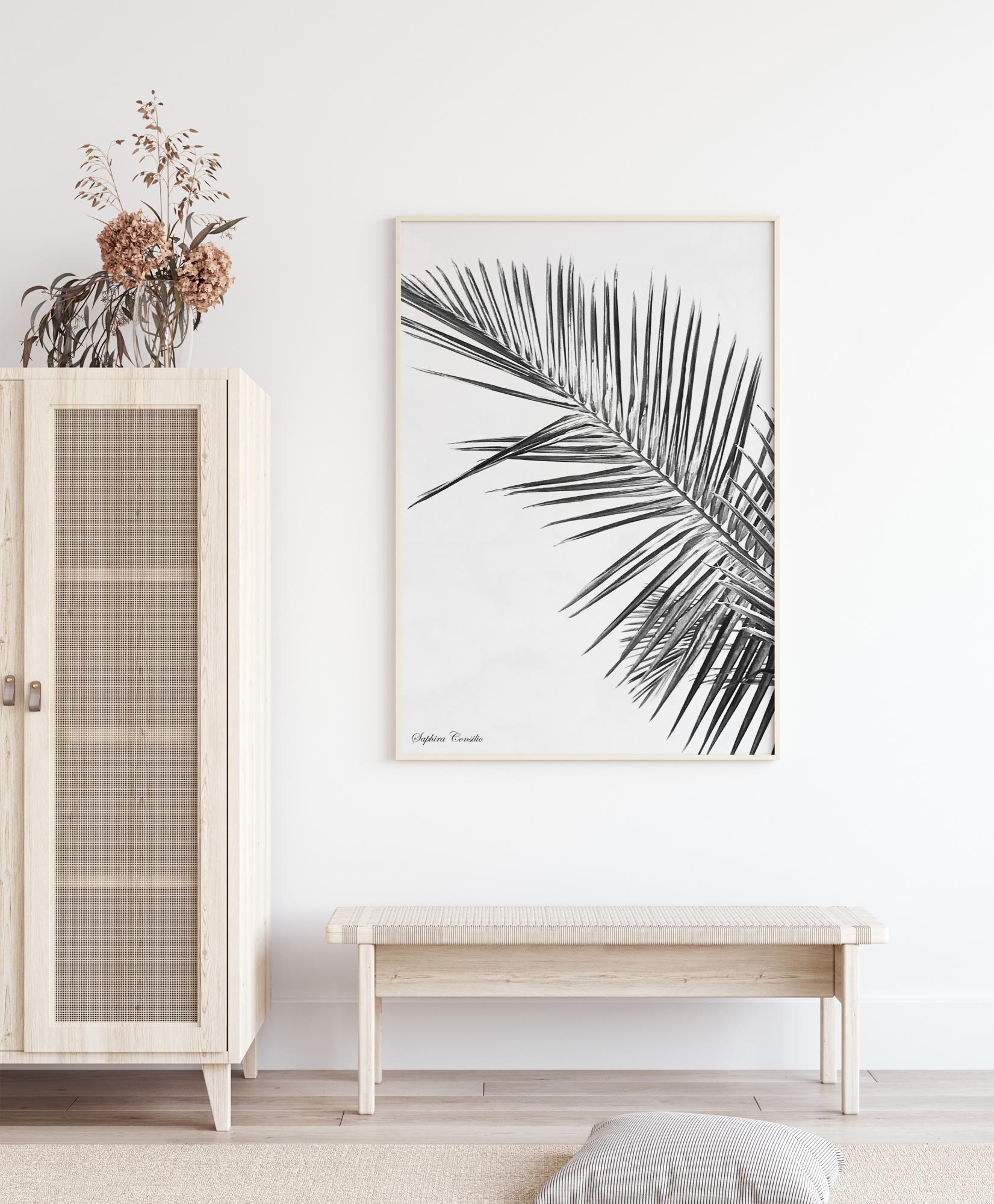 Une photographie en nuances de gris d'une branche de palmier, créée par la photographe Saphira Consilio. Un poster agréablement minimaliste qui s'intègre parfaitement dans, par exemple, une maison moderne ou inspirée du rétro. Associez-le volontiers avec quelque chose de notre autre gamme de Saphira Consilio pour un plus grand mur de tableaux.