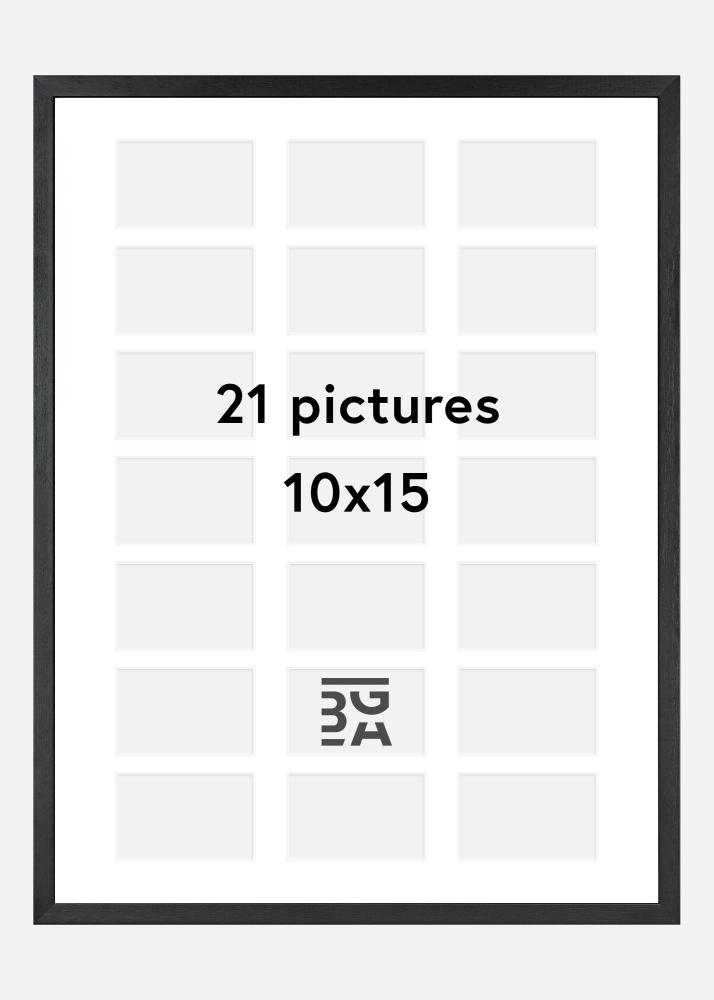 Black Wood est doté d'un passe-partout pouvant contenir 21 images ce qui convient parfaitement pour les photos des enfants, des animaux de compagnie, ou bien pourquoi pas quelques images du dernier voyage. Ce cadre noir et élégant, en combinaison avec son passe-partout blanc, met en valeur les couleurs et les motifs, et convient également aux images en noir et blanc.