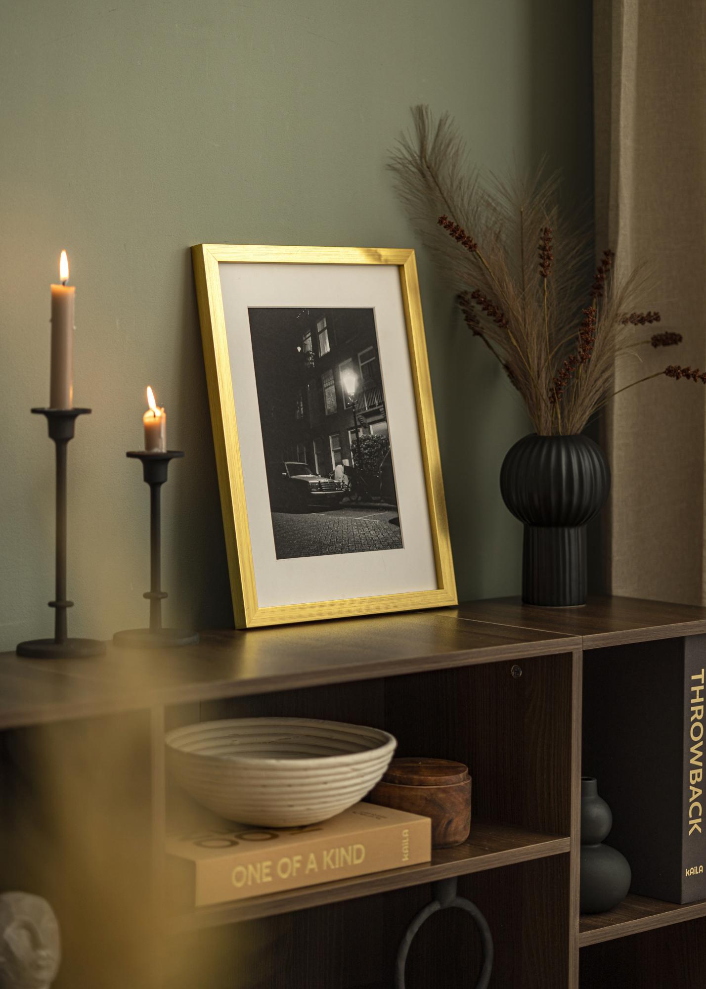 Forfait comprenant le cadre photo et le passe-partout blanc assorti. Sur la photo du produit, vous pouvez voir les dimensions du cadre (indiquées en gras) et les dimensions intérieures du passe-partout (indiquées entre parenthèses). Notez que les dimensions intérieures du passe-partout se doivent d'être toujours 1 cm inférieures par rapport à la taille de l'image que vous souhaitez encadrer.
