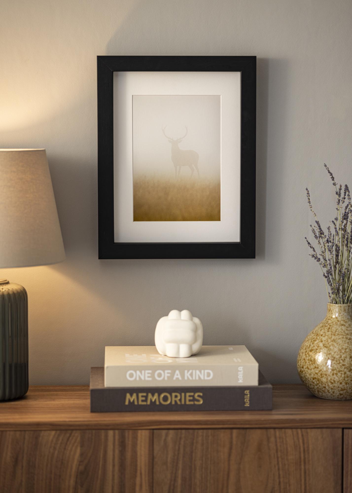 Cadre en pin fabriqué en Finlande qui est peint en noir directement sur le bois pour une sensation de bois plus authentique. "Boxholm Noir" a une profondeur de 43 mm, parfaite lorsque vous souhaitez encadrer différents types d'objets, ou bien simplement que vous voulez que votre encadrement ressorte un peu du mur. Le cadre comprend également une bordure de distance qui vous permet de choisir entre deux profondeurs d’encadrement.
