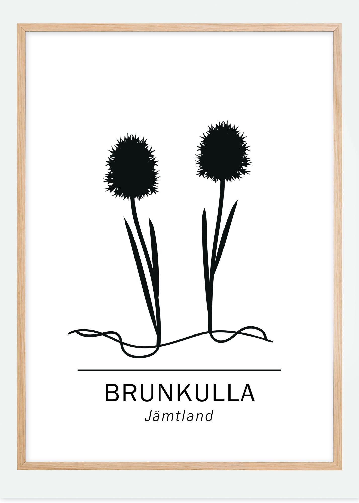 Une simple affiche de deux orchidées brunkulla noires,rares , sur un fond blanc. Les mots Brunkulla Jamtland figurent sous les orchidées de cette image minimaliste. Associez-la à une couleur vive de votre choix pour faire ressortir encore plus ces puissants chardons de la pièce.