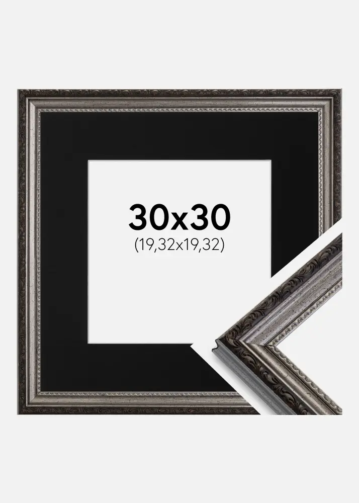 Cadre Abisko Argent 30x30 cm - Passe-partout Noir 8x8 pouces