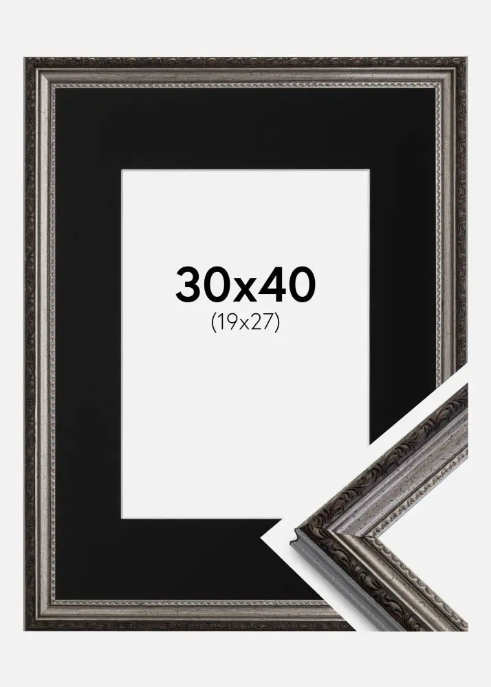 Cadre Abisko Argent 30x40 cm - Passe-partout Noir 20x28 cm