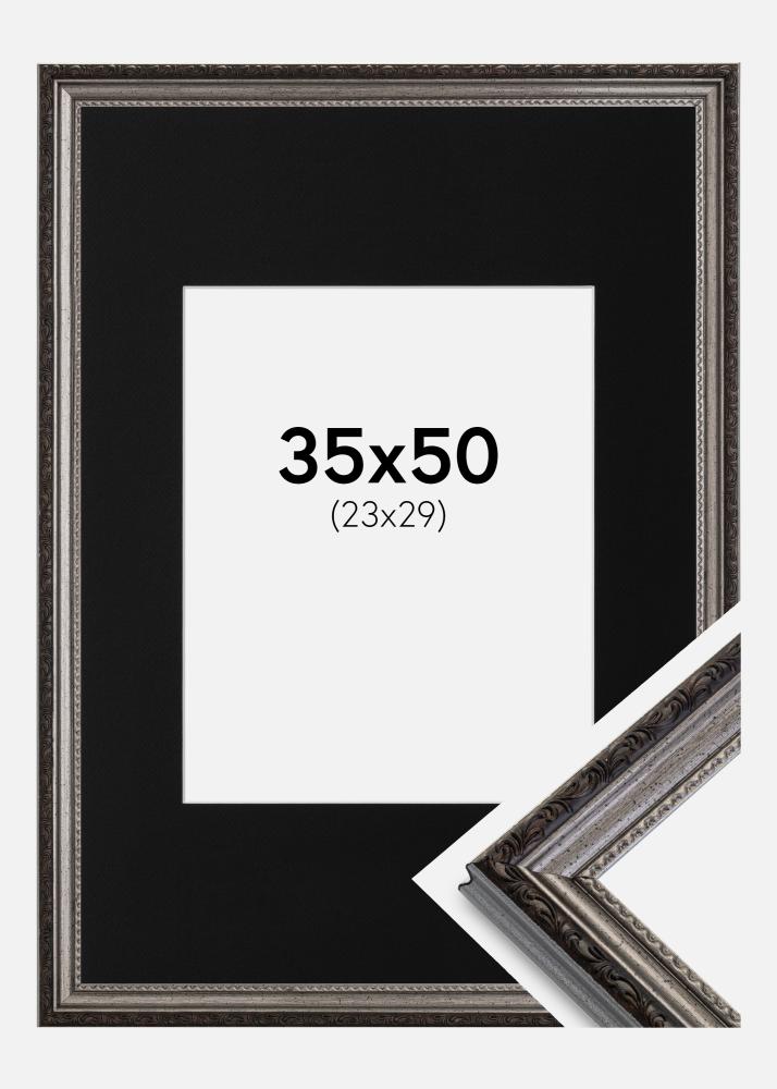 Cadre Abisko Argent 35x50 cm - Passe-partout Noir 24x30 cm