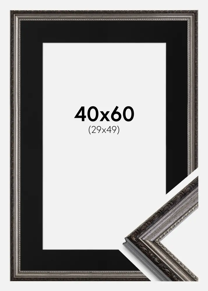 Cadre Abisko Argent 40x60 cm - Passe-partout Noir 30x50 cm