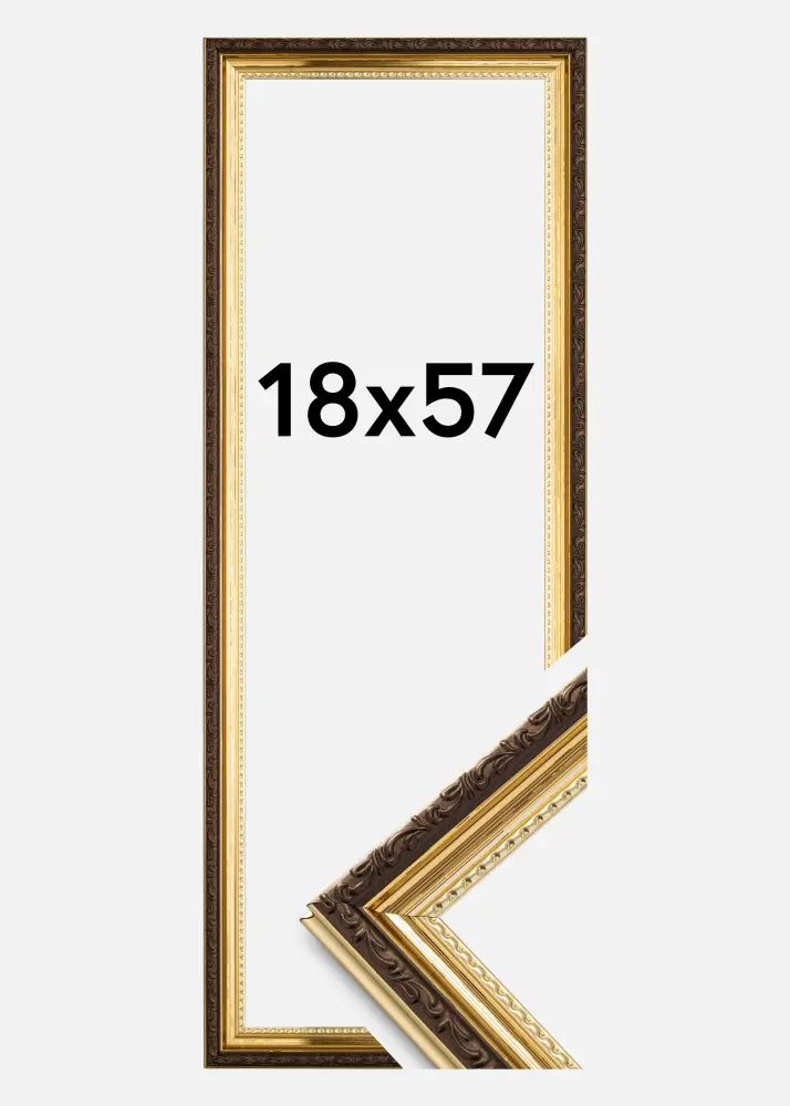 Abisko est un cadre élégant dans une couleur dorée et dans un style rétro avec de jolies décorations. Le cadre est doré brillant avec des éléments de rouge et a une baguette extérieure joliment ornée dans une couleur marron chaude. Il convient très bien lorsque vous recherchez un cadre doré élégant dans un style plus ancien.