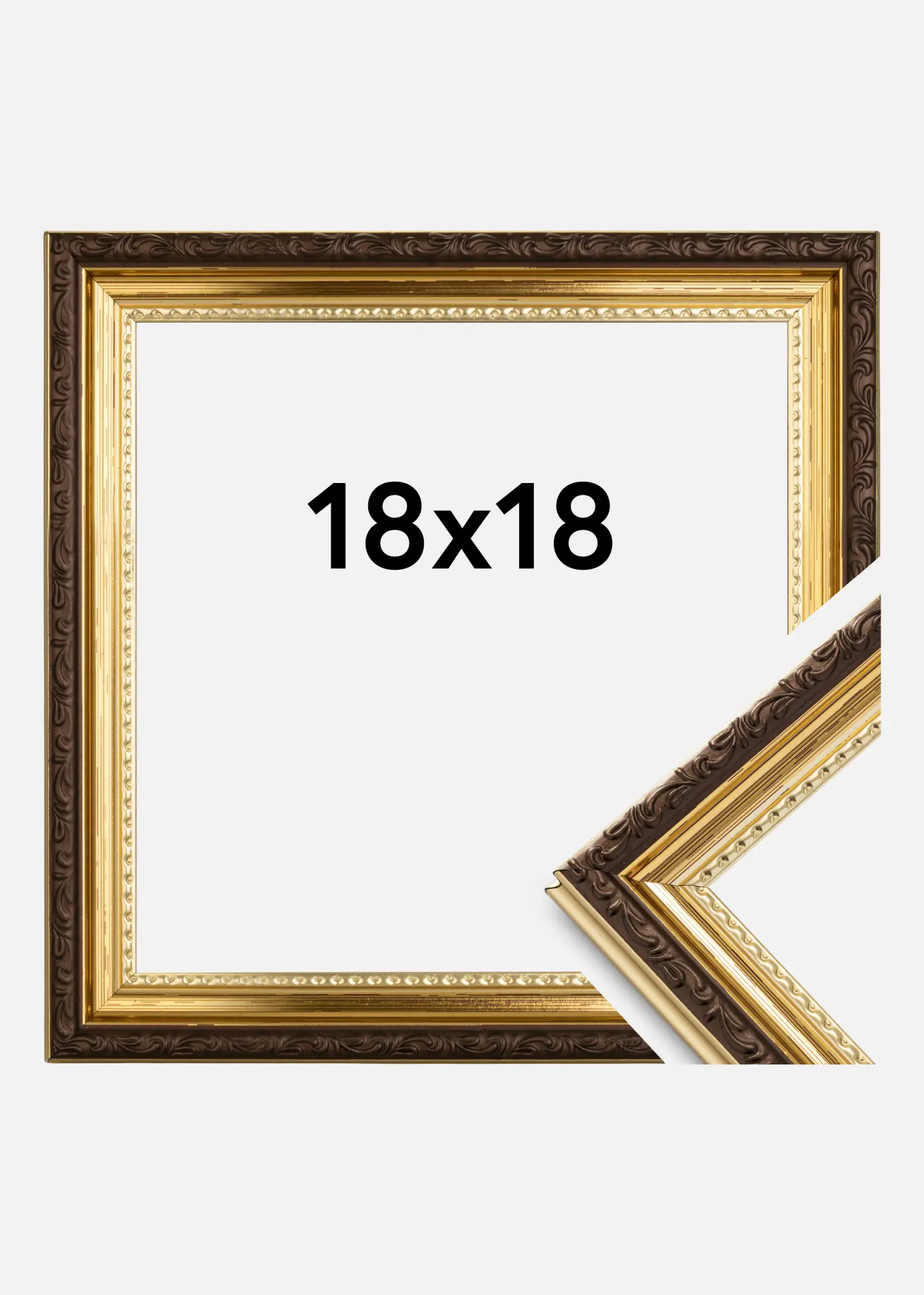 Seriez-vous à la recherche d'un joli cadre décoré dans un style ancien ? Abisko Verre Acrylique Or est un véritable cadre doré avec une ornementation incroyablement esthétique. Les baguettes du cadre d'une largeur de 25 mm sont dans une couleur dorée mate avec une bordure marron ornée au centre. La partie dorée est également décorée, avec un motif ondulé autour du verre.