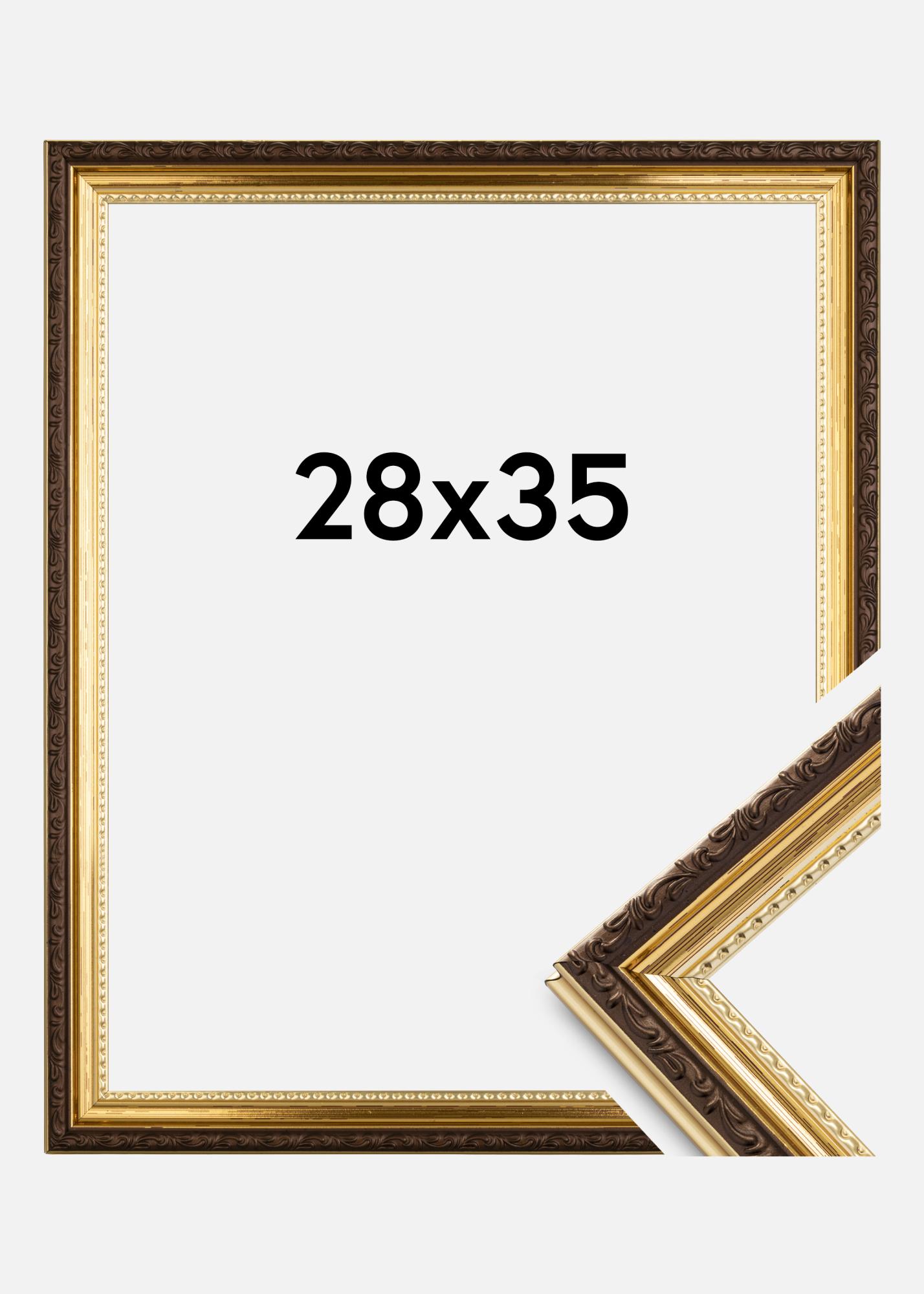 Seriez-vous à la recherche d'un joli cadre décoré dans un style ancien ? Abisko Verre Acrylique Or est un véritable cadre doré avec une ornementation incroyablement esthétique. Les baguettes du cadre d'une largeur de 25 mm sont dans une couleur dorée mate avec une bordure marron ornée au centre. La partie dorée est également décorée, avec un motif ondulé autour du verre.
