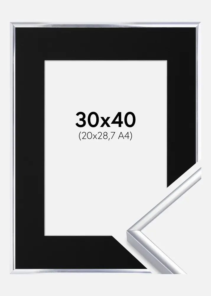 Cadre Aluminium Brillant Argent 30x40 cm - Passe-partout Noir 21x29,7 cm