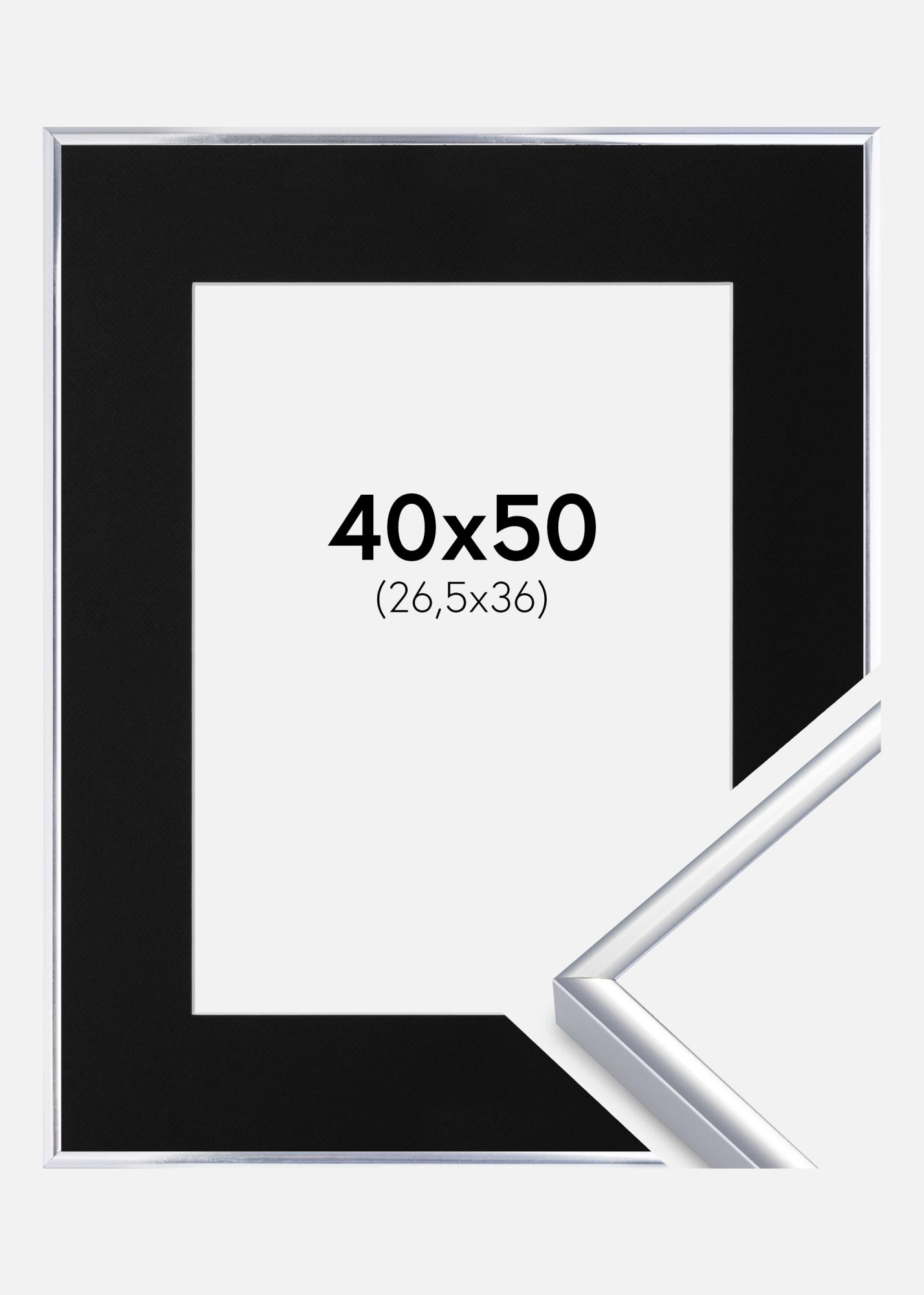 Cadre Aluminium Brillant Argent 40x50 cm - Passe-partout Noir 27,5x37 cm
