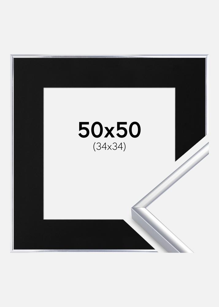 Cadre Aluminium Brillant Argent 50x50 cm - Passe-partout Noir 35x35 cm