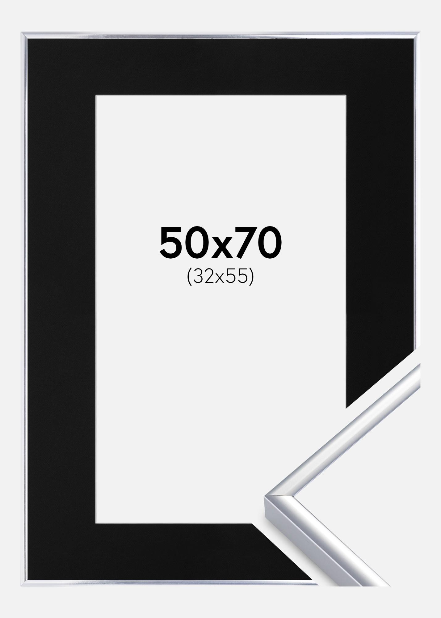 Cadre Aluminium Brillant Argent 50x70 cm - Passe-partout Noir 33x56 cm