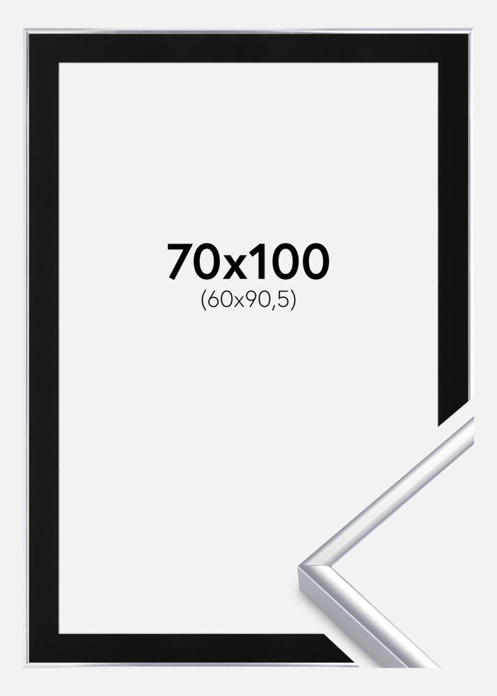 Cadre Aluminium Brillant Argent 70x100 cm - Passe-partout Noir 61x91,5 cm