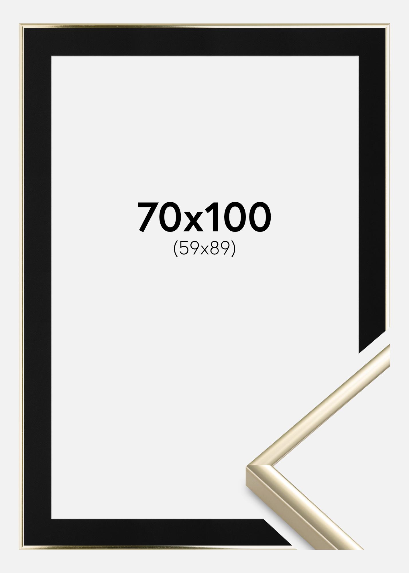 Cadre Aluminium Brillant Or 70x100 cm - Passe-partout Noir 60x90 cm