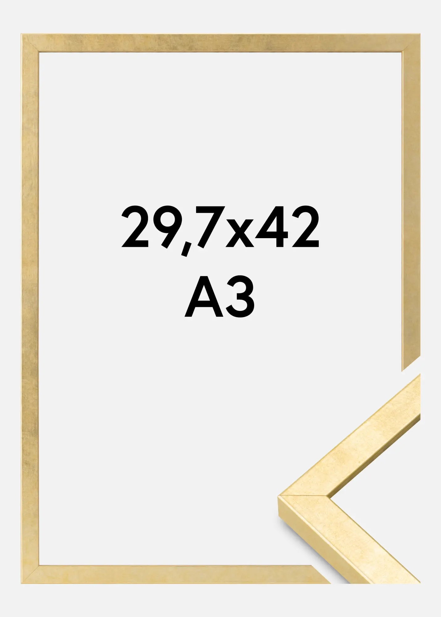 Créez un élégant mur de cadres avec notre cadre exclusif en or de taille 29,7x42 cm (A3), parfait pour mettre en valeur vos œuvres d'art ou photographies. Ce cadre photo couleur or est un véritable accroche-regard qui apporte une touche luxueuse à votre maison ou votre bureau. Fabriqué en bois d'ayous de haute qualité, le cadre offre une construction durable et stable conçue pour durer.