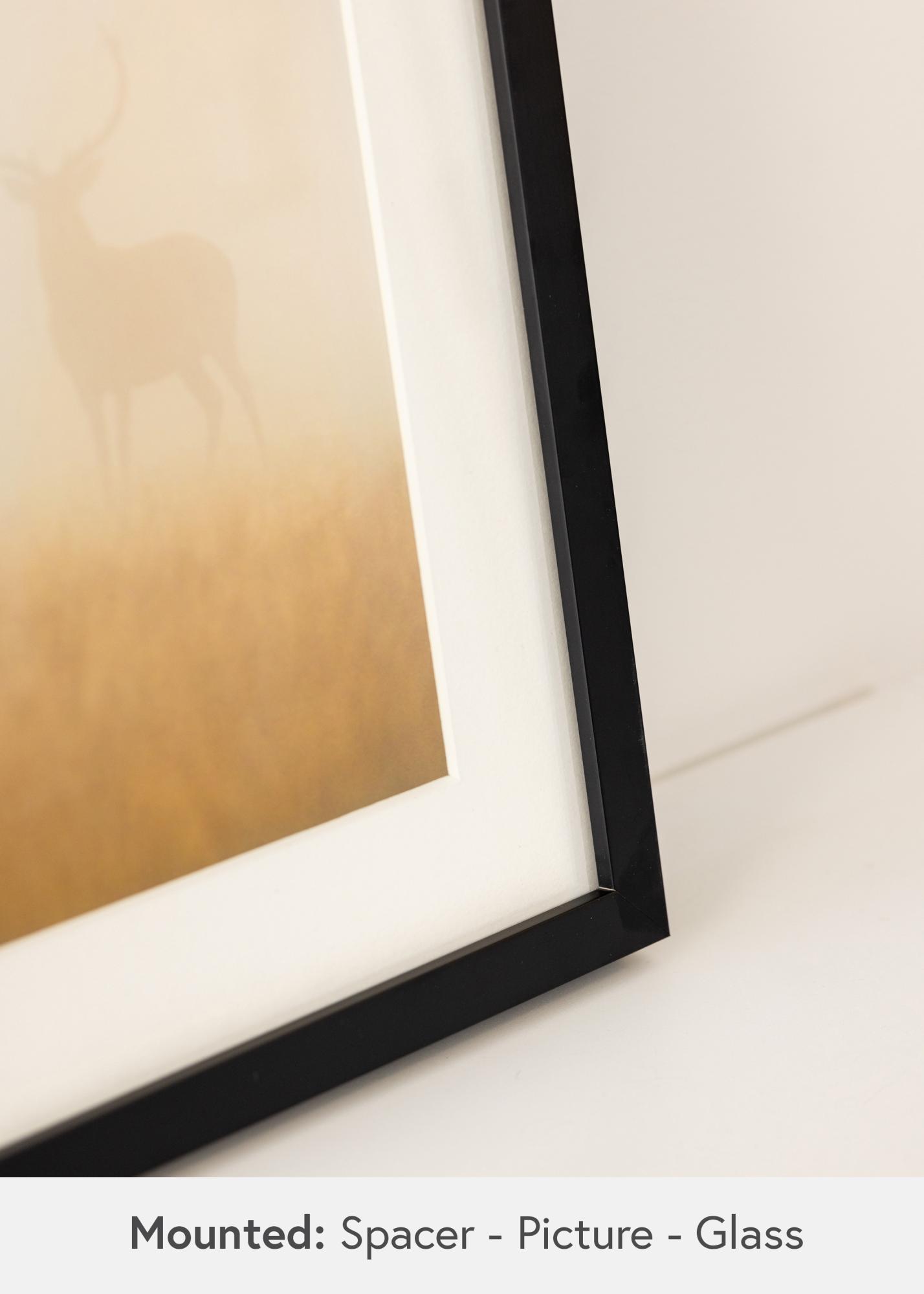 Fabriqué en pin, ce cadre est à la fois durable et léger, ce qui le rend facile à manipuler et à monter. Une caractéristique unique du Balder Noir est la baguette de distanciation incluse. Cette baguette crée un espace entre le verre et l'image, ce qui donne un effet de profondeur et permet de placer l'image plus loin dans le cadre ou flottant entre le verre et le support. Cela offre un encadrement élégant et exclusif qui met réellement en valeur le sujet.