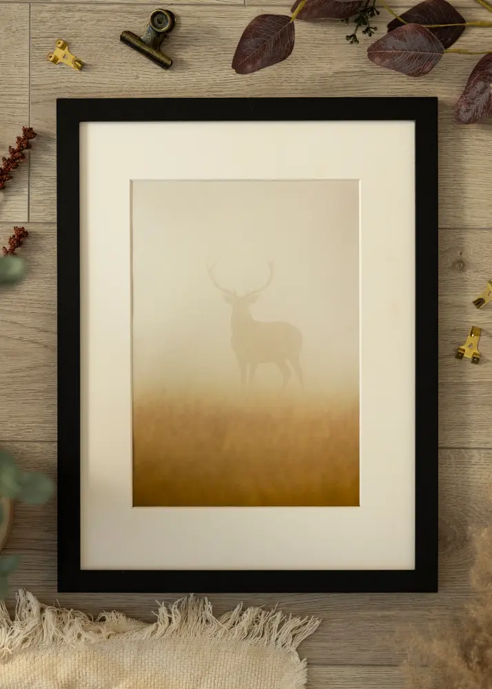 Cet élégant cadre noir d'une largeur de 20 mm et d'une profondeur de 14 mm est parfait pour mettre en valeur vos images préférées. Avec une finition mate et un passe-partout blanc, il offre un encadrement élégant qui souligne le sujet de manière raffinée.