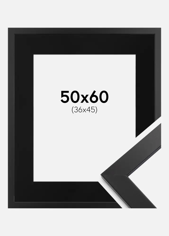 Cadre Black Wood 50x60 cm - Passe-partout Noir 37x46 cm