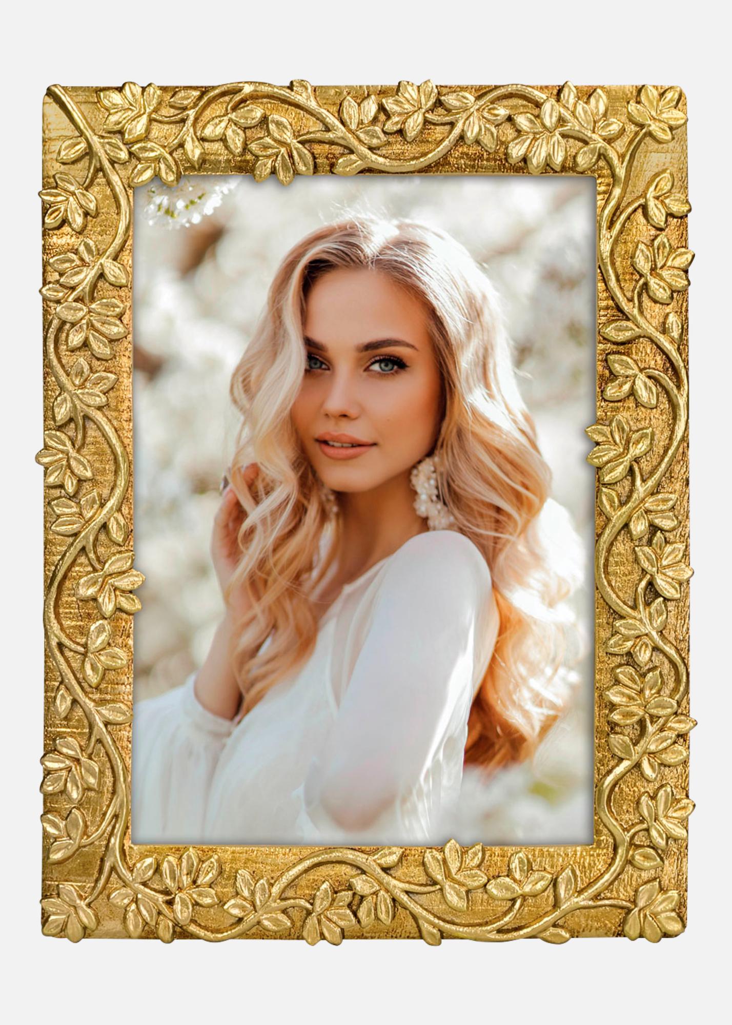 Donnez à vos photos préférées un cadre royal avec ce cadre portrait délicat de couleur or. Avec ses ornements fleuris élaborés, chaque photo devient une oeuvre d'art en soi. La taille du cadre est de 13x18 cm, parfaite pour mettre en valeur vos moments les plus chers.