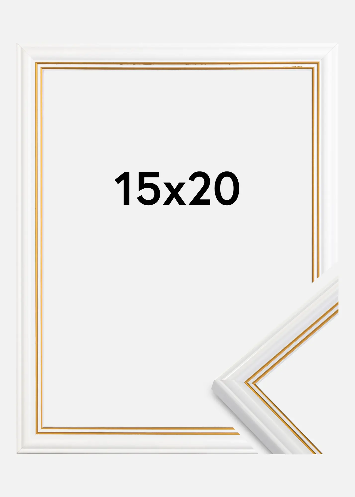 Wenn Sie nach einem eleganten und stilvollen Bilderrahmen zu einem guten Preis suchen, ist "Classic Weiß" genau das, was Sie suchen. Der Rahmen hat ein weißes, abgerundetes Profil, das mit zwei dünnen goldfarbenen Linien nahe am Motiv verziert ist. Perfekt beispielsweise für Porträtfotos oder schöne Naturbilder.