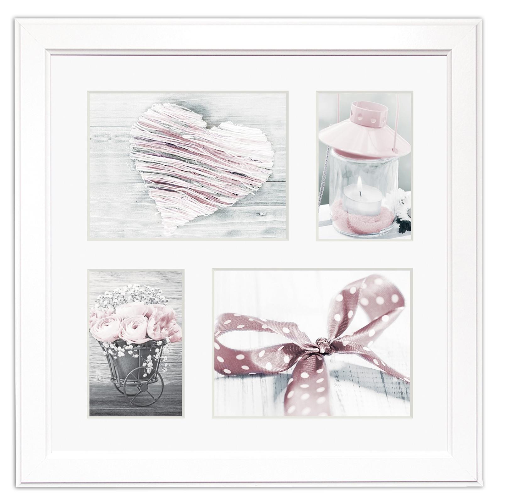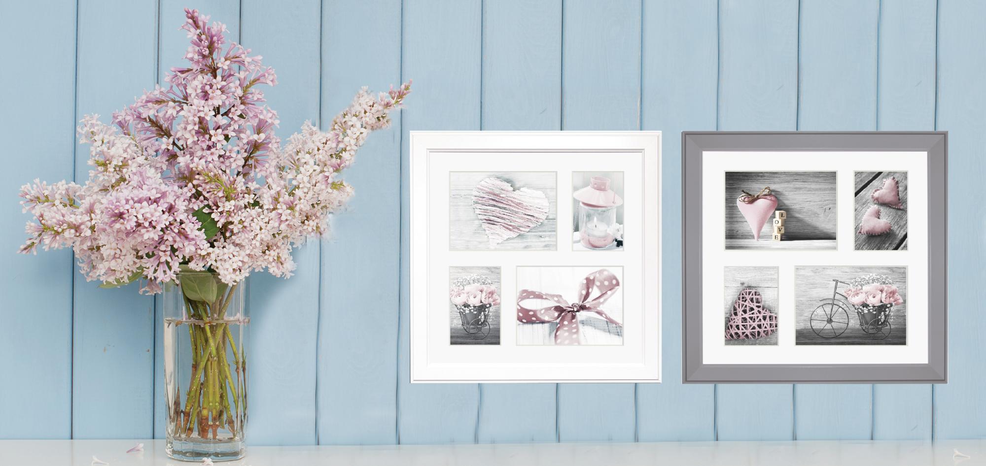 Si vous ne pouvez pas vous décider de quelle photo de la fête d’anniversaire ou du mariage était la meilleure, cela peut être tout aussi bien de créer un collage de vos photos préférées. Nous avons ici un joli cadre pêle-mêle qui rassemble les images dans un ensemble symétrique. Le cadre a des détails luxueux et il est tout en blanc, ce qui le rend facile à assortir. À l'intérieur se trouve un passe-partout blanc qui structure et protège.