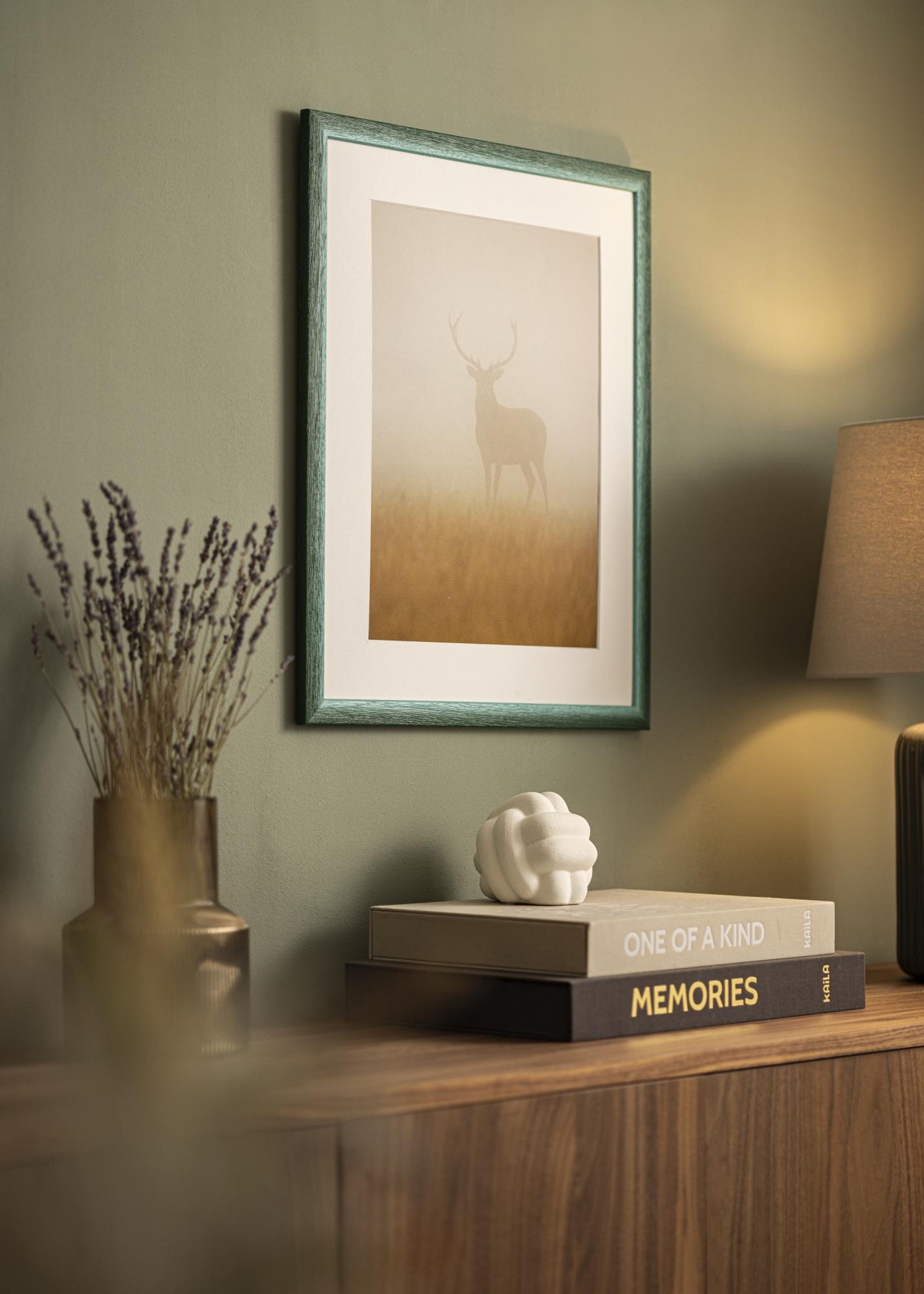 La couleur verte atténuée présente des variations subtiles qui donnent une expression vivante et naturelle, tandis que la texture boisée proéminente avec de profonds grains crée une sensation rustique. La surface a une finition mate qui adoucit l'intensité de la couleur et donne une impression douce, permettant à vos photos de vraiment prendre le devant de la scène. Le profil étroit équilibre l'apparence rustique avec une simplicité moderne.