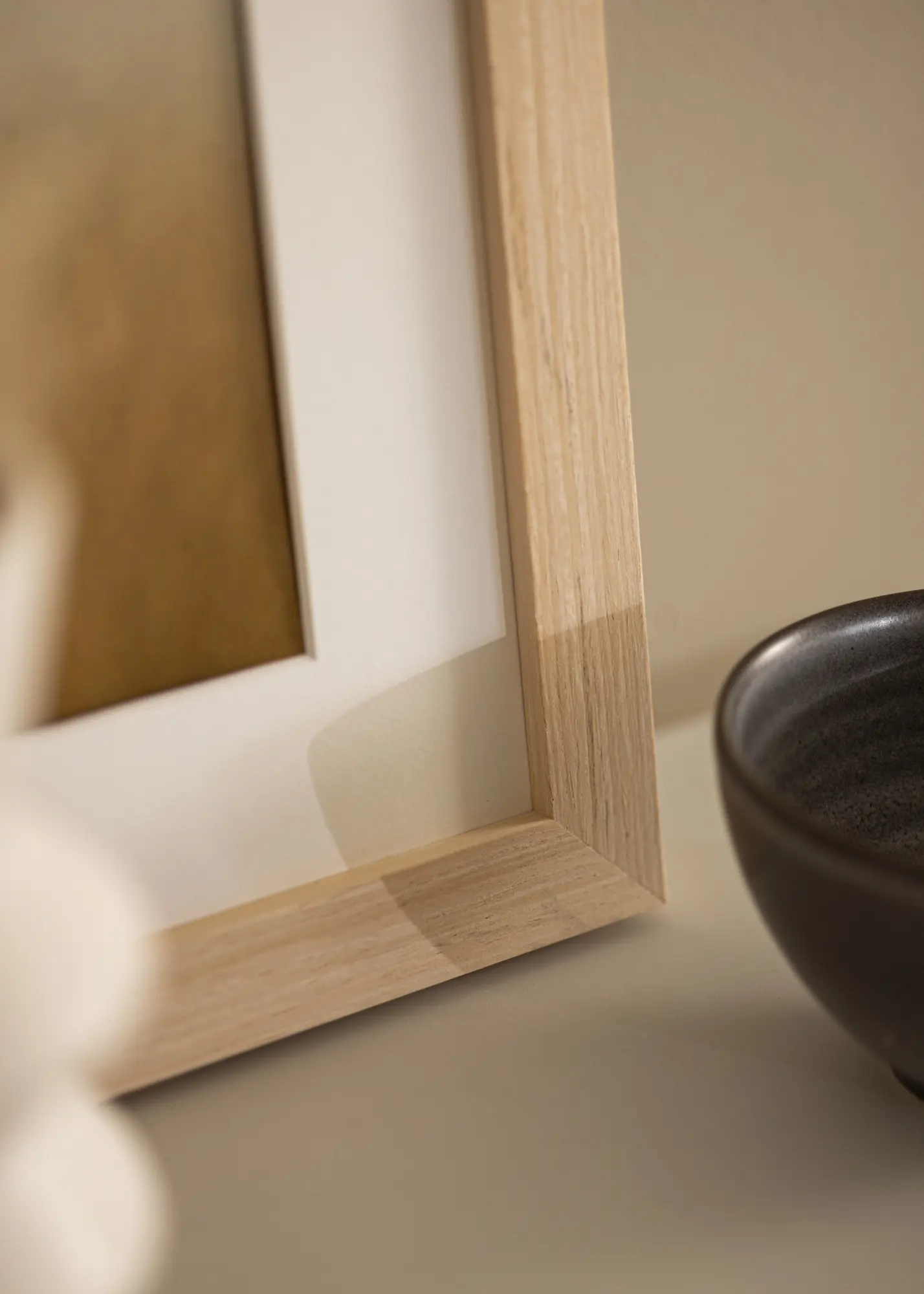 Le cadre a une baguette large de 28 mm et une profondeur de 33 mm, offrant une sensation stable et robuste. Fabriqué en pin, ce cadre est à la fois durable et élégant. La surface a une finition satinée mate qui met en valeur la texture sans réfléchir la lumière, garantissant que vos images restent toujours au centre de l'attention. Le profil droit contribue à une expression épurée et harmonieuse.