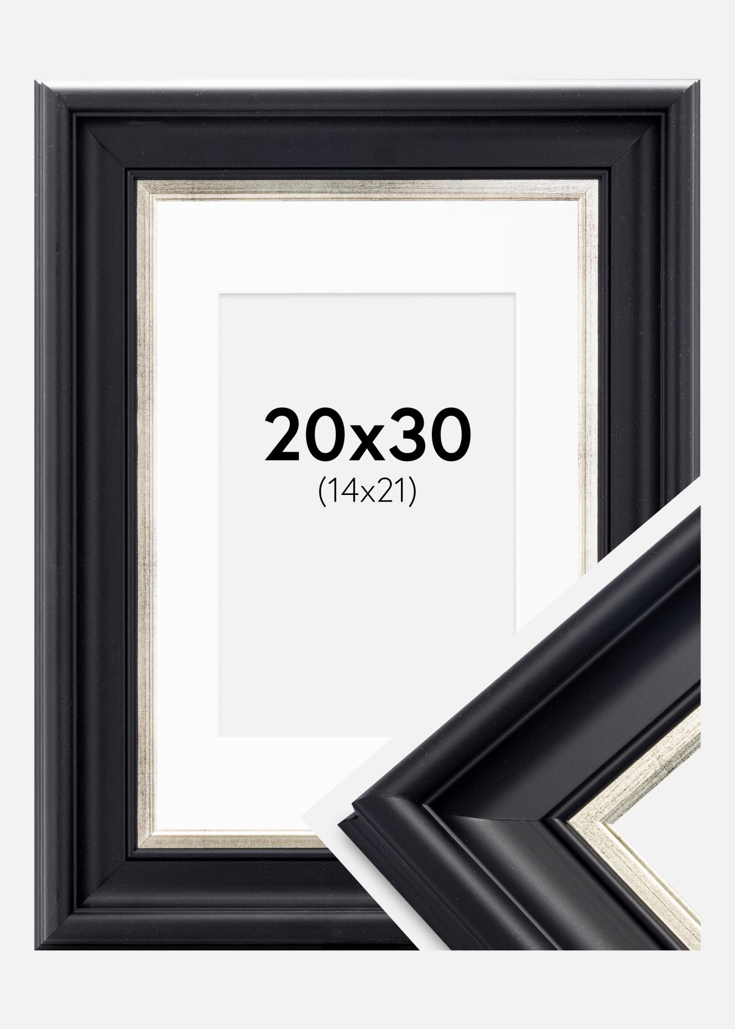 Cadre Dalarna Noir-Argent 20x30 cm - Passe-partout Blanc 15x22 cm