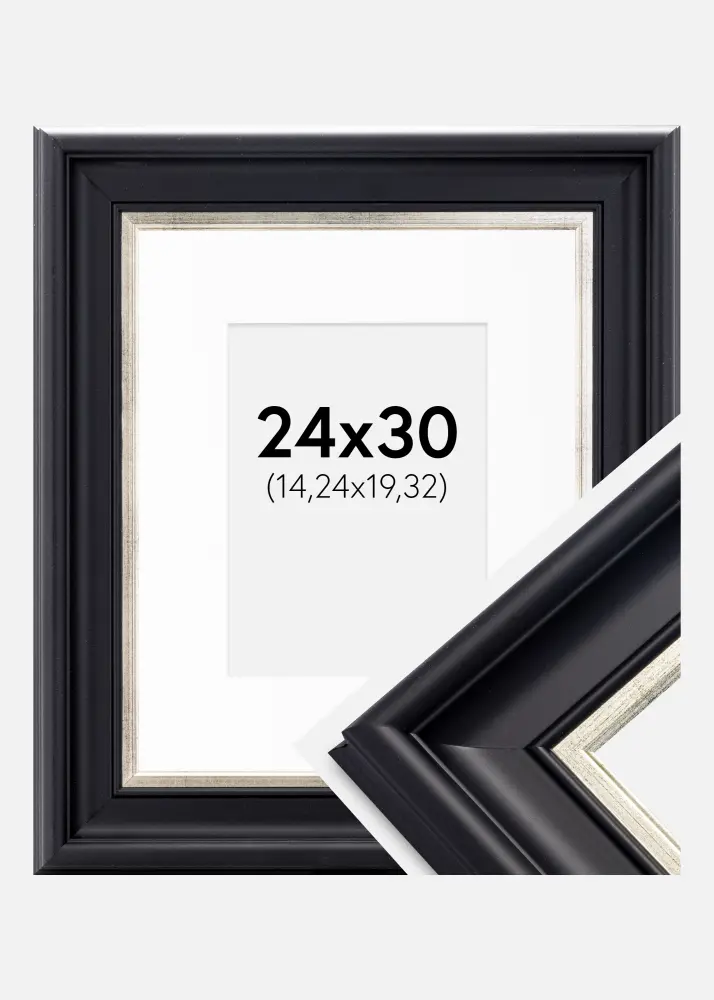 Cadre Dalarna Noir-Argent 24x30 cm - Passe-partout Blanc 6x8 inches