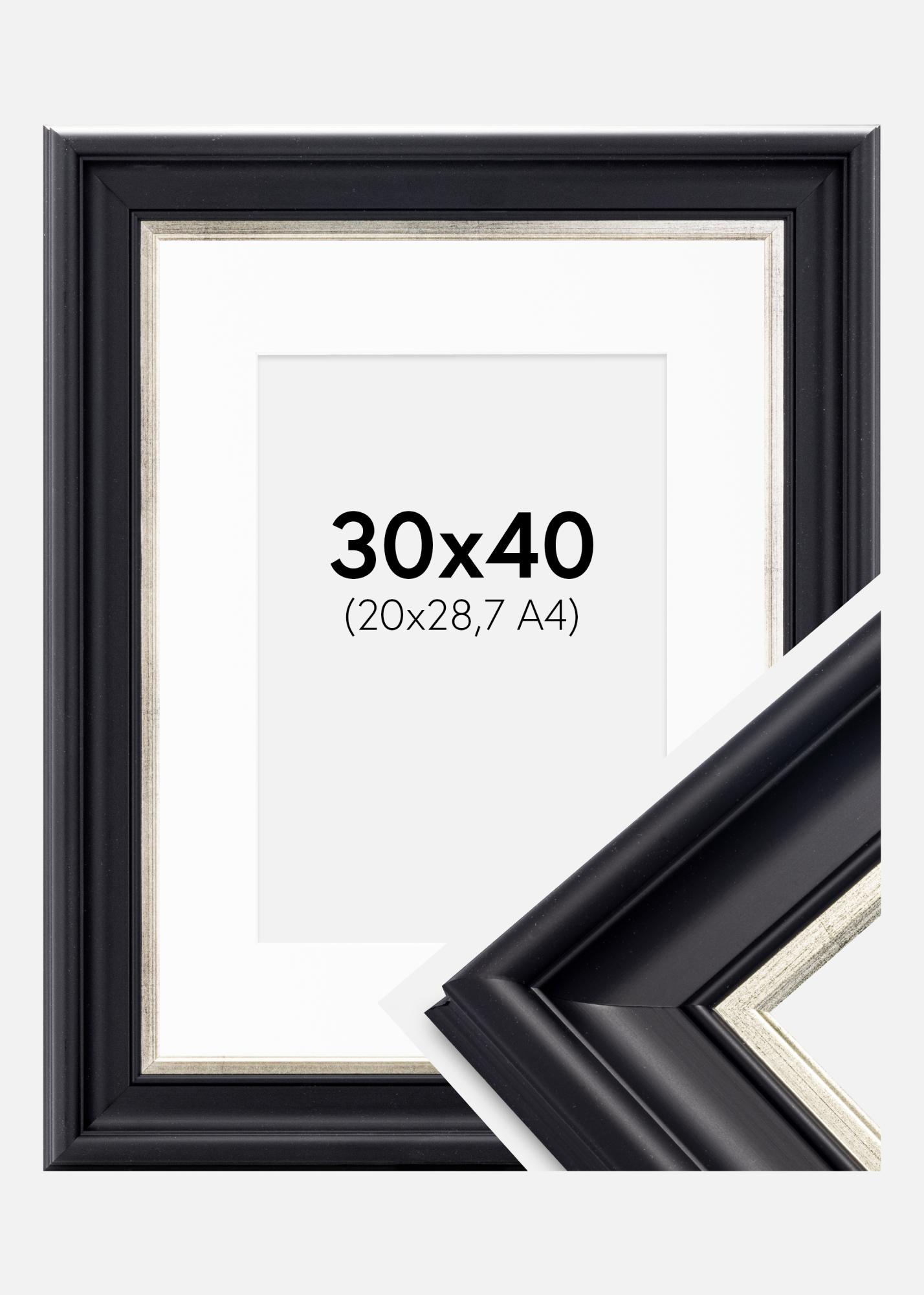 Cadre Dalarna Noir-Argent 30x40 cm - Passe-partout Blanc 21x29,7 cm (A4)