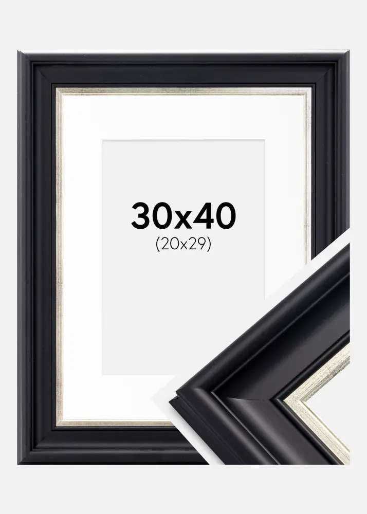 Cadre Dalarna Noir-Argent 30x40 cm - Passe-partout Blanc 21x30 cm