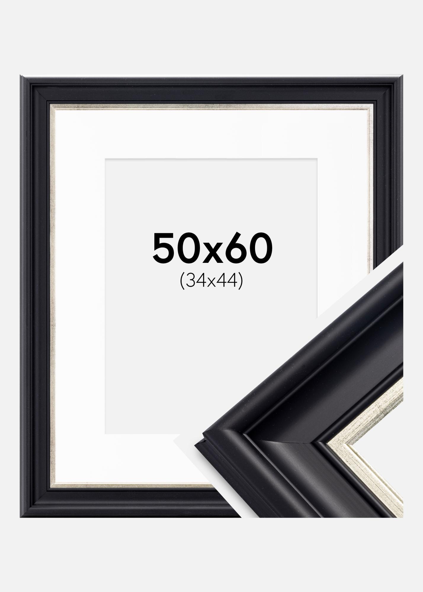 Cadre Dalarna Noir-Argent 50x60 cm - Passe-partout Blanc 35x45 cm