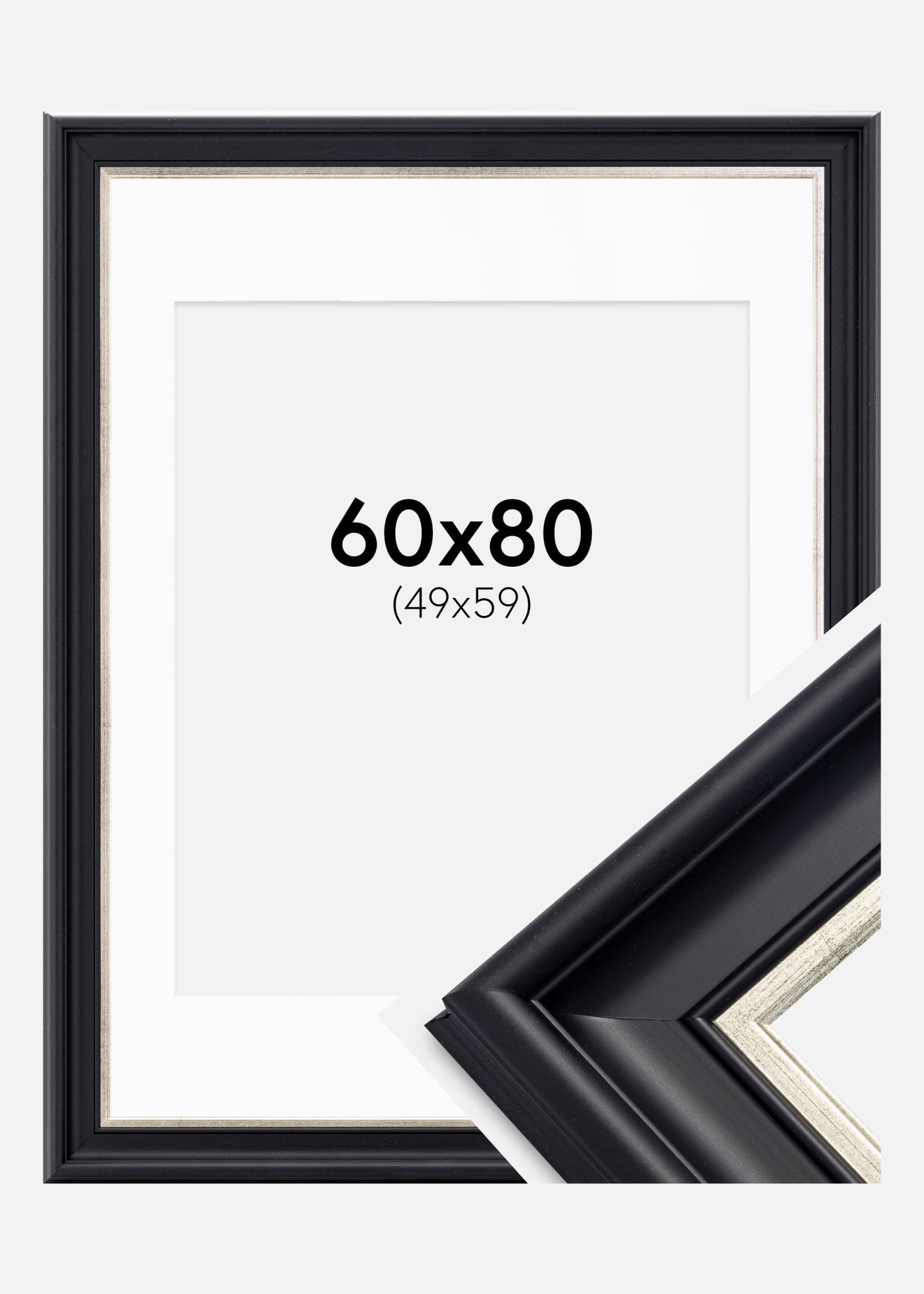 Cadre Dalarna Noir-Argent 60x80 cm - Passe-partout Blanc 50x60 cm